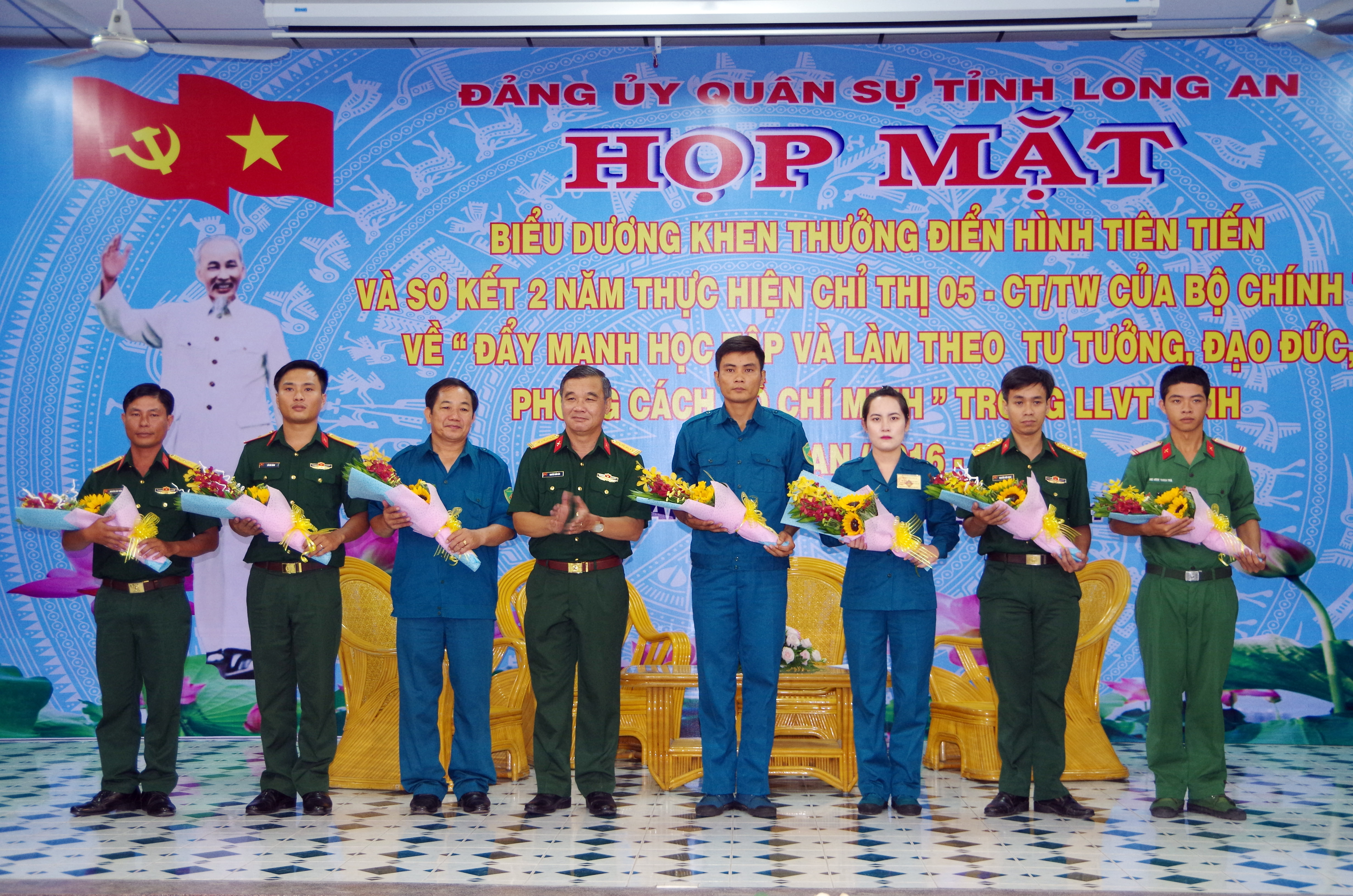 Trung sỹ Trang Ngọc Thanh Trà (bìa phải) là điển hình tiên tiến được Đảng ủy quân sự tỉnh Long An tôn vinh khen thưởng tại Hội nghị sơ kết 2 năm thực hiện chỉ thị 05.