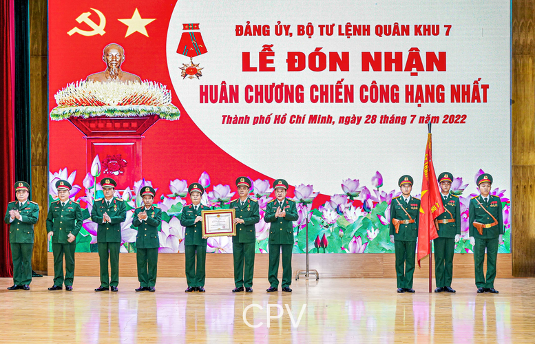 Kỷ niệm 77 năm Ngày truyền thống Quân khu 7 (10/12/1945 – 10/12/2022) đúng vào dịp toàn Đảng toàn quân, toàn dân đang ra sức thi đua lập thành tích xuất sắc chào mừng kỷ niệm 78 năm Ngày thành lập Quân đội Nhân dân Việt Nam (22/12/1944-22/12/2022), 33 năm Ngày Hội Quốc phòng toàn dân(22/12/1989 - 22/12/2022) và chào mừng Triển lãm Quốc phòng quốc tế Việt Nam 2022 được tổ chức tại Hà Nội … Hơn lúc nào hết, LLVT Quân khu 7 tiếp tục phát huy truyền thống “Trung thành vô hạn, chủ động sáng tạo, tự lực tự cường, đoàn kết quyết thắng”, luôn tuyện đối trung thành với Đảng, Nhà nước, Nhân dân, nâng cao cảnh giác, mài sắc ý chí chiến đấu, kên quyết, kiên trì bảo vệ vững chắc độc lập chủ quyền, thống nhất toàn vẹn lãnh thổ, biển đảo thiêng liêng của Tổ quốc, bảo vệ Đảng, Nhà nước, Nhân dân và chế độ xã hội chủ nghĩa, góp phần giữ vững và phát triển đất nước trong gia đoạn mới. Luôn thương yêu đồng chí, kính trọng nhân dân, gắn bó thủy chung với bạn bè quốc tế, nêu gương sáng, phát huy truyền thống, cống hiến tài năng, xứng danh “Bộ đội Cụ Hồ” để không phụ lòng tin yêu, kỳ vọng của Đảng, Nhà nước, Nhân dân với mảnh đất Thành đồng Tổ quốc.