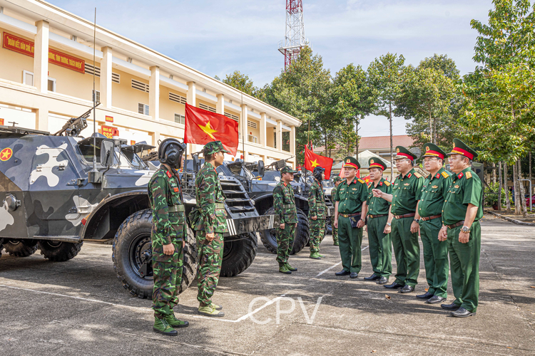 Đoàn công tác do Thiếu tướng Du Trường Giang, Phó Tư lệnh Quân khu 7 phụ trách kiểm tra công tác sẵn sàng chiến đấu ở Bộ Chỉ huy Quân sự tỉnh Bà Rịa Vũng Tàu.