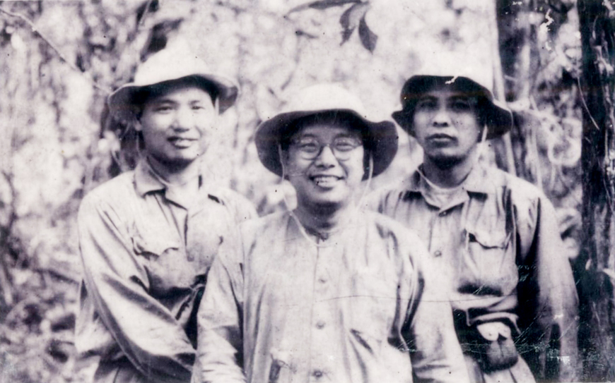 Trong chiến dịch Đường 9 - Khe Sanh 1968, Chính ủy Lê Quang Đạo (đứng giữa) với thư ký Khôi và bảo vệ Hóa (bên phải). Ảnh tư liệu