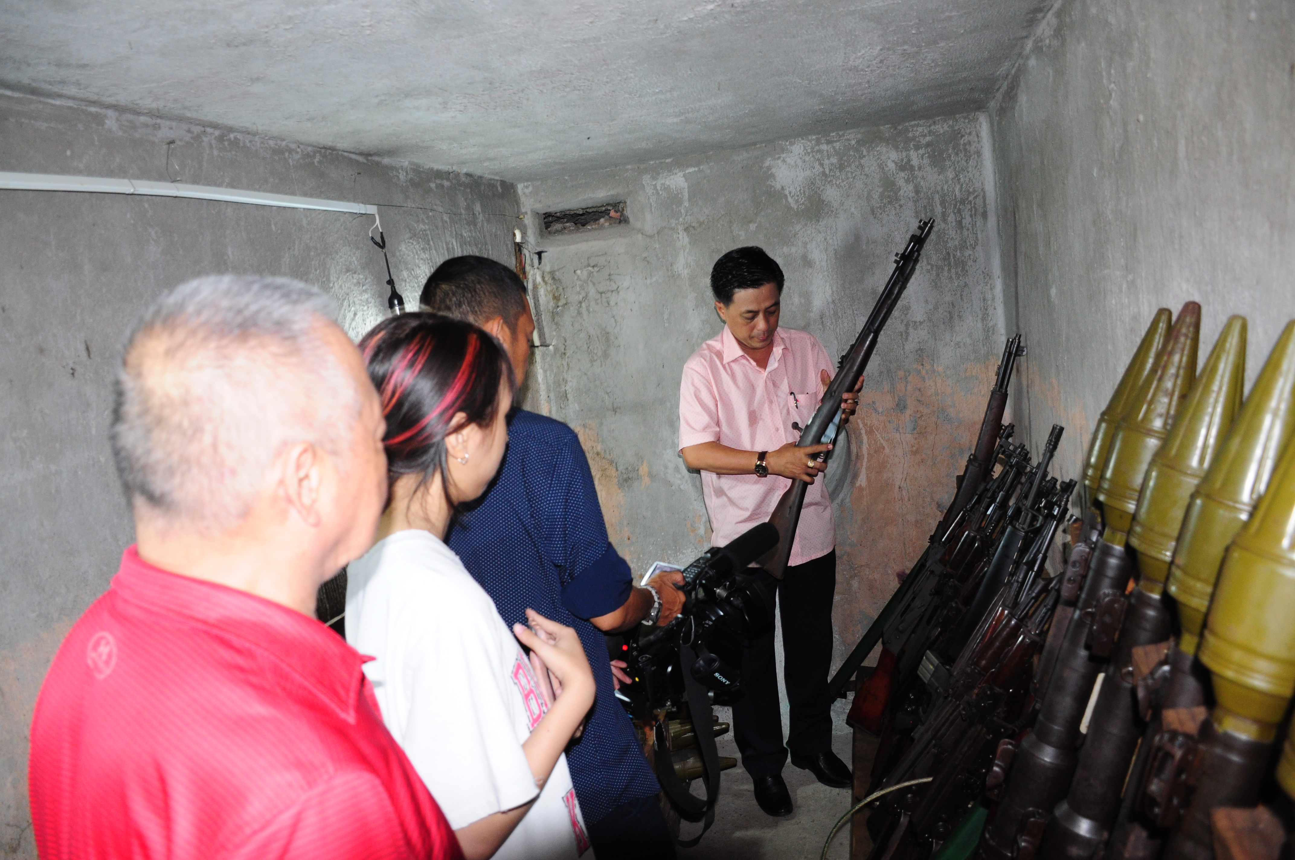 Anh Bình giới thiệu hầm chứa vũ khí của Biệt động Sài Gòn cho khách tham quan