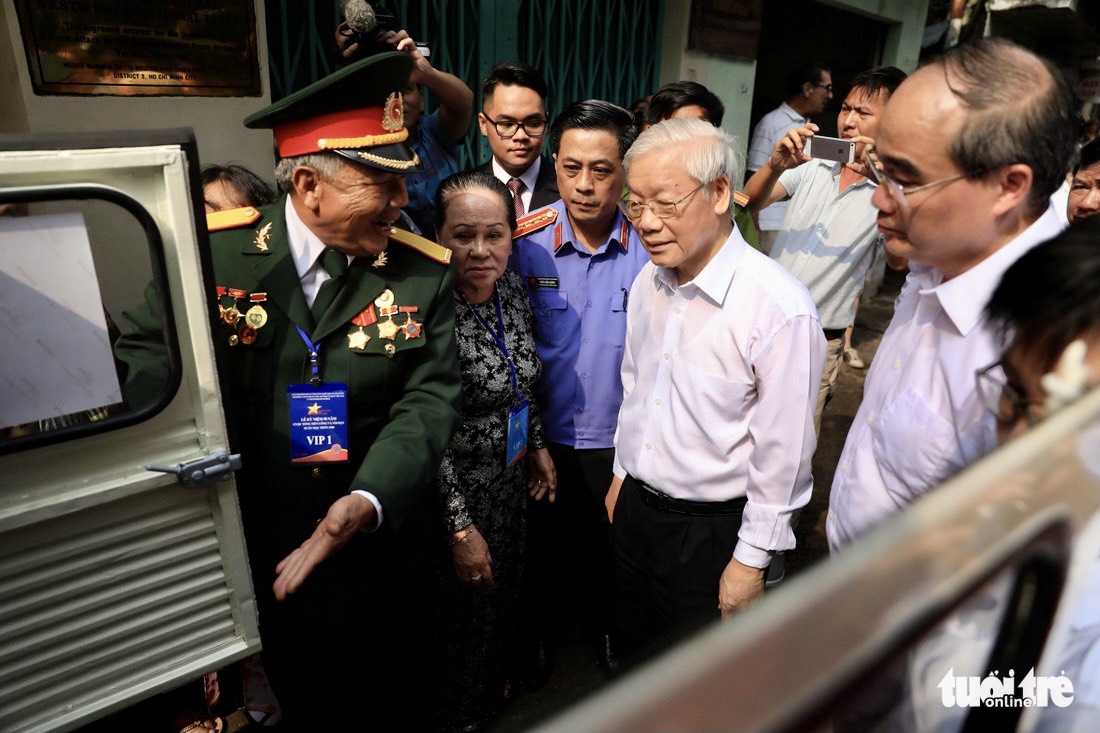 Tổng Bí thư Nguyễn Phú Trọng tham quan cơ sở Biệt động Sài Gòn do Anh hùng LLVT Nhân dân Trần Văn Lai xây dựng