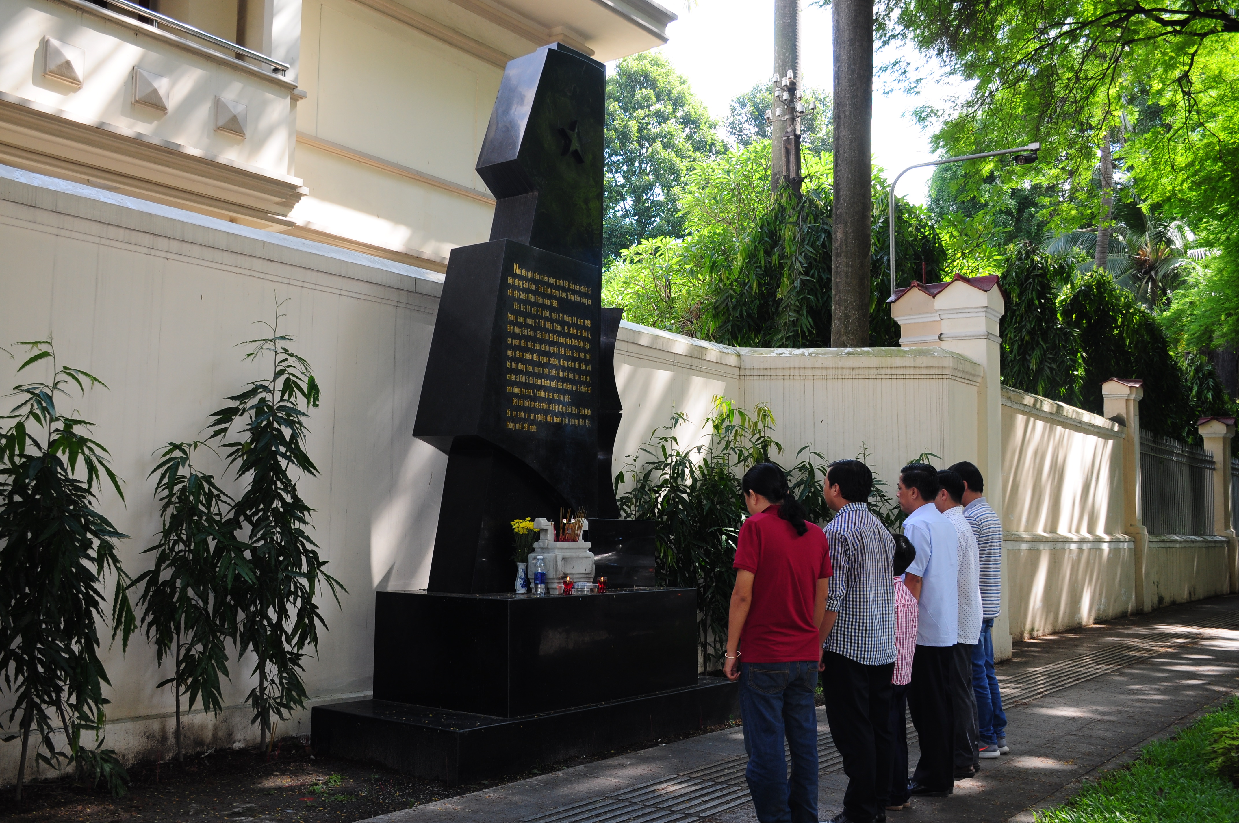 Các đoàn khách thắp nhang tại ​Bia tưởng niệm các chiến sĩ Biệt động Sài Gòn tại 108 Nguyễn Du-Quận 1