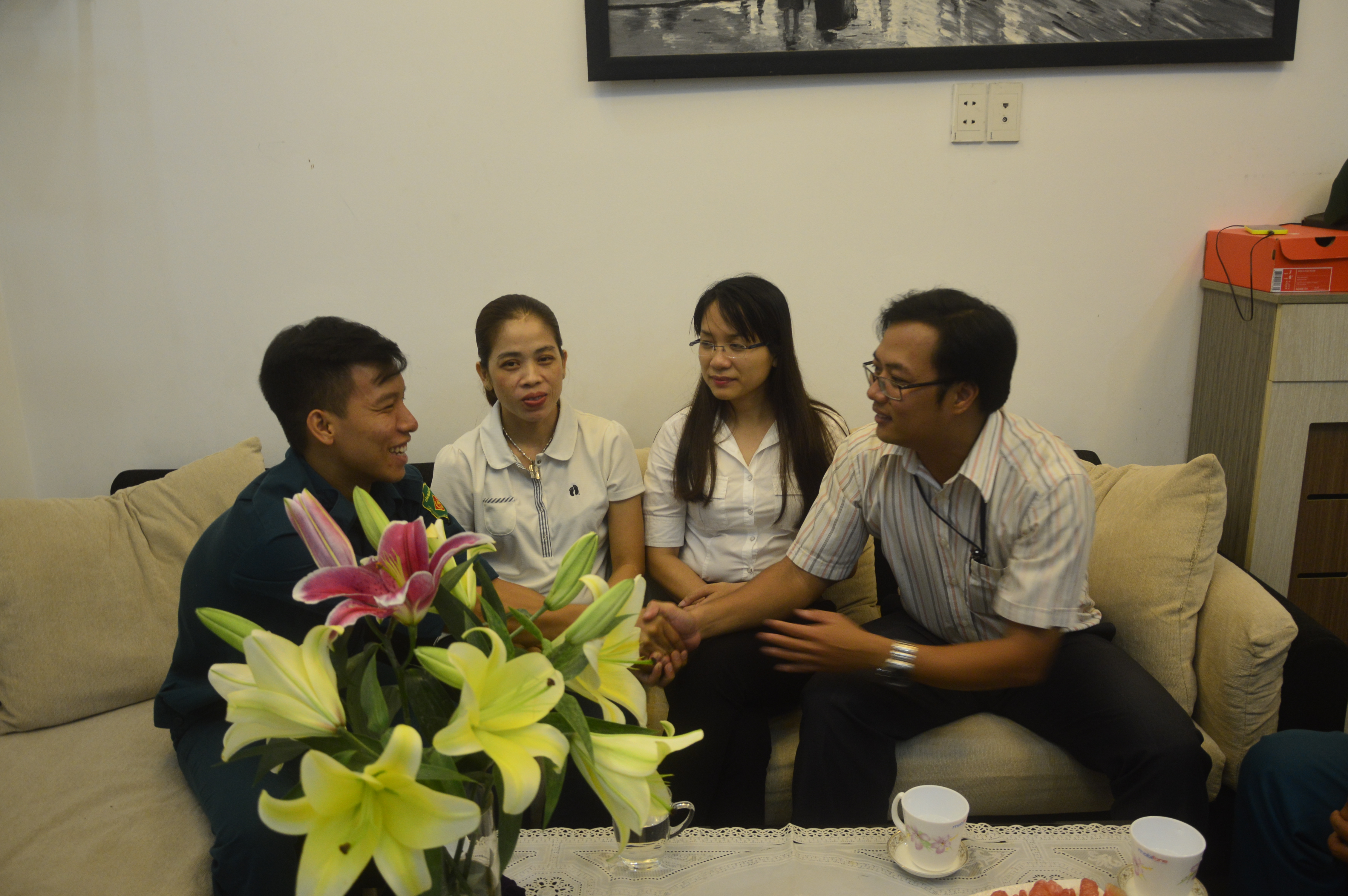 Đồng chí Nguyễn Xuân Thành (bìa phải), Bí thư Đảng ủy - Chính trị viên Ban Chỉ huy Quân sự phường 6 tìm hiểu nguyện vọng đảng viên xuất ngũ