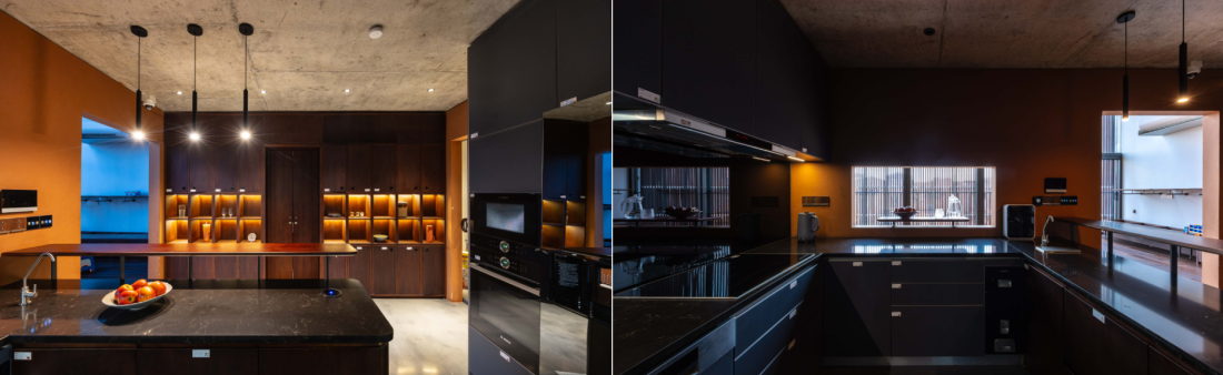 Bên trong là không gian hoàn toàn khác biệt với đầy đủ tiện nghi của một gian bếp hiện đại và khu vực ăn uống thoải mái đáp ứng cho cả gia đình ba thế hệ.