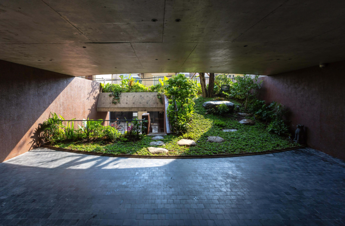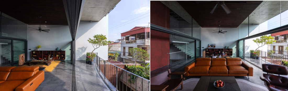 Chất lượng không gian truyền thống được tái hiện qua sự kết hợp nhiều lớp của hiên nhà, sân trong và giếng trời. Những lớp chuyển tiếp này – từ ngoài vào trong, từ tầng trệt lên các tầng trên – tạo ra một dòng chảy liên tục, nơi kiến trúc và cảnh quan hòa quyện vào nhau.