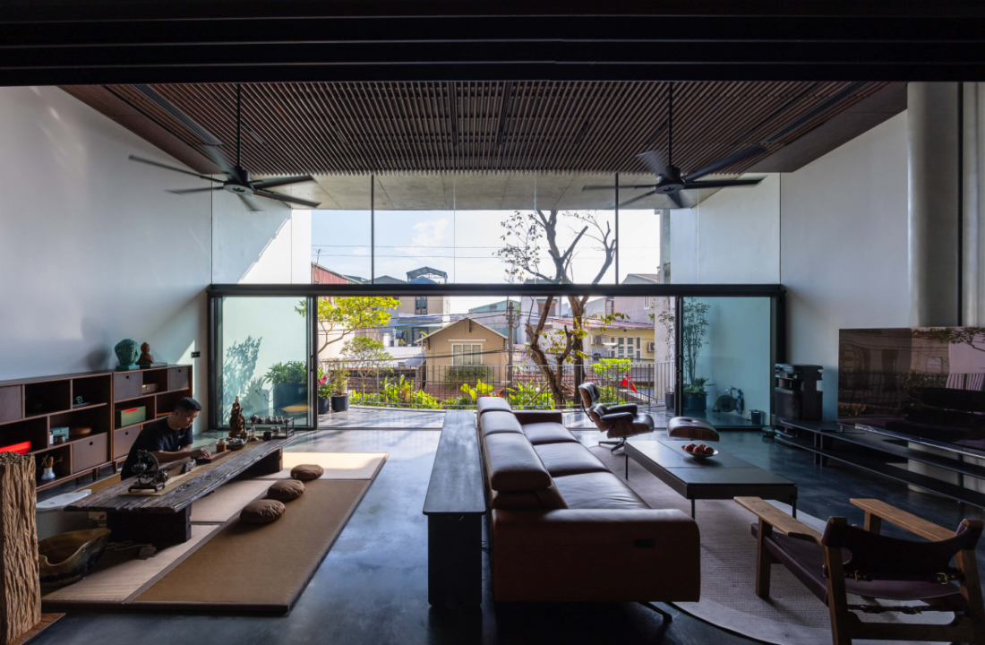 Lõi thông tầng: Nằm ở trung tâm, lõi này hoạt động như một lá phổi của ngôi nhà. Nó dẫn ánh sáng và gió sâu vào bên trong, đồng thời kết nối trực quan và không gian giữa tất cả các tầng.