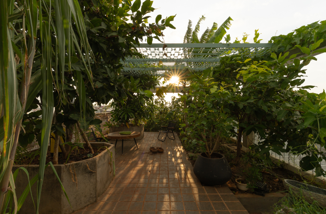 Sân thượng: Một khu vườn với rau xanh và cây ăn quả, được thiết kế như một không gian chung ngoài trời. Đây là nơi lý tưởng để gia đình thư giãn, hít thở không khí trong lành và tái tạo năng lượng sau một ngày làm việc.