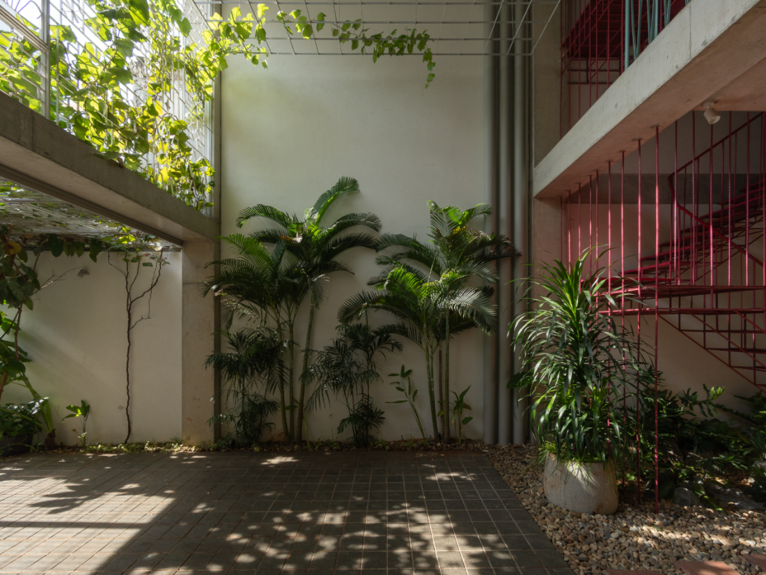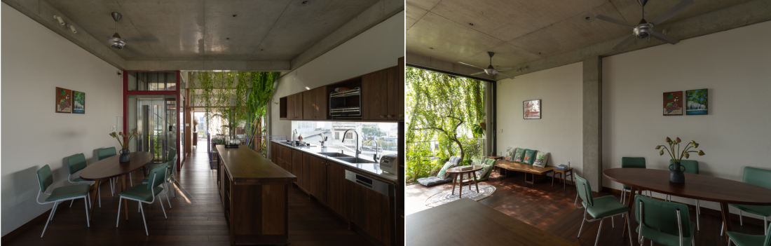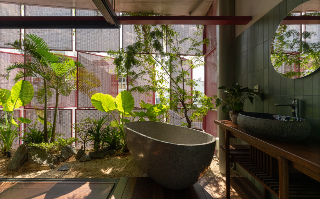 Cây xanh và Khoảng thông tầng: Cây xanh được lồng ghép vào các khoảng thông tầng. Chúng giúp làm mát không khí, tăng cường sự riêng tư và mang thiên nhiên đến gần hơn với cuộc sống đô thị chật chội.