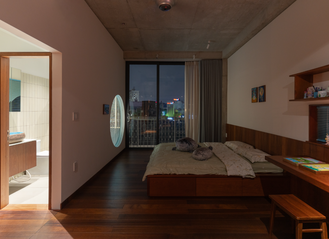 Tầng ba và tầng bốn: Dành cho khu vực sinh hoạt gia đình, với phòng khách, bếp và phòng ngủ. Các không gian này được kết nối bằng các hành lang rộng và giếng trời lớn, khuyến khích sự tương tác và giao tiếp giữa các thành viên.