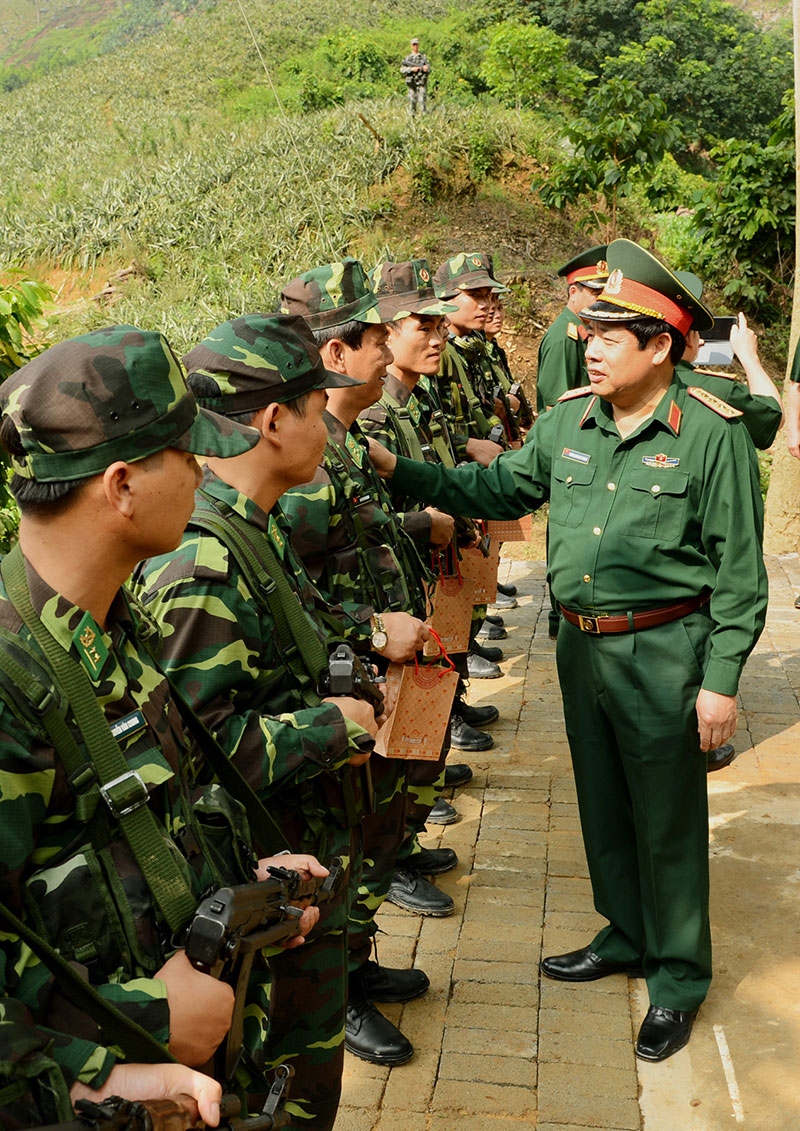 Đại tướng Phùng Quang Thanh với quân, dân các tỉnh biên giới phía Bắc năm 2015. Ảnh: MINH TRƯỜNG