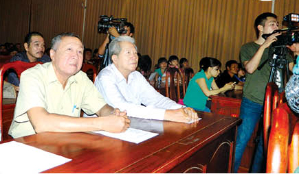 Đại tá - NSƯT - Nhạc sĩ Vũ Thành, nguyên Trưởng đoàn Văn công Quân khu 7 (thứ 2 từ trái sang) đến dự đêm nhạc