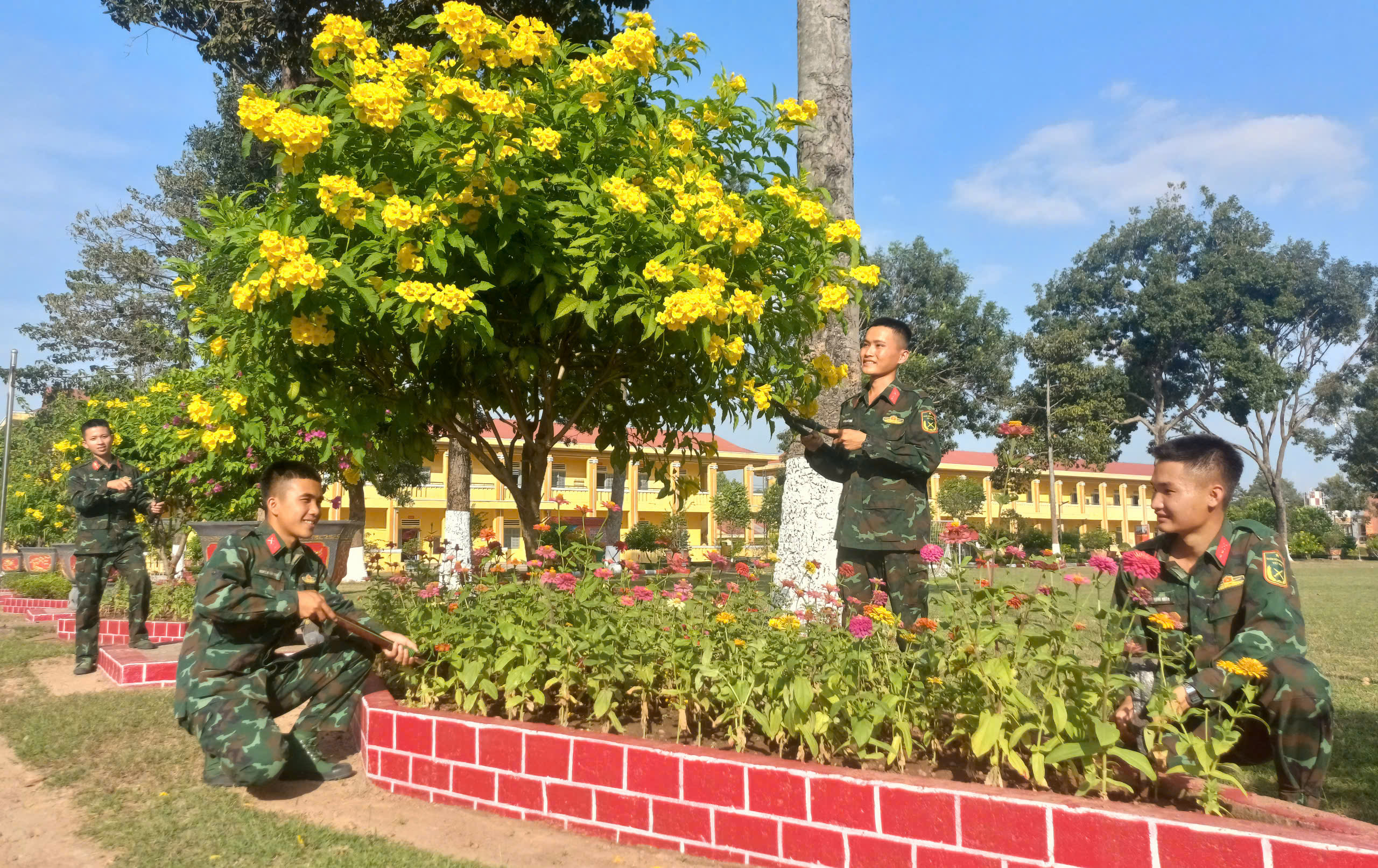 Để mang mùa xuân về bên đồng đội, cán bộ, chiến sĩ nơi đây đã gieo, trồng và chăm sóc hàng nghìn chậu hoa các loại, như: Hướng dương, vạn thọ, mào gà, cúc Đà Lạt, hoàng yến, quỳnh anh,…việc gieo trồng và chăm sóc hoa, cũng thể hiện tài năng, kinh nghiệm và đức tính cần cù, sáng tạo, kiên trì, nhẫn nại của các chiến sĩ.