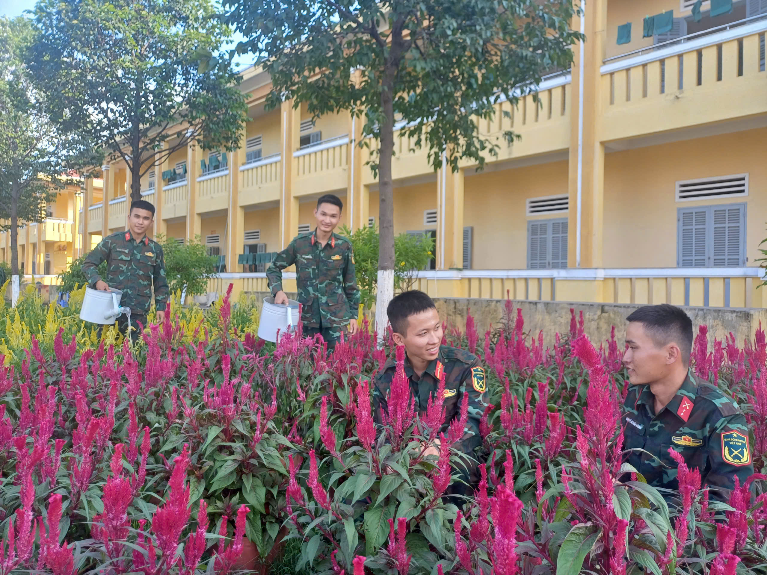 Thượng úy Nguyễn Nhựt Hào, Chính trị phó Đại đội 3, Tiểu đoàn 7, Trung đoàn 31 chia sẻ: Hàng năm, vào các dịp lễ lớn, các sự kiện trọng đại của đảng, đất nước, Quân đội và đơn vị, nhất là Tết cổ truyền của dân tộc, cán bộ, chiến sĩ đơn vị tôi thường gieo trồng, chăm sóc khoảng 1,5 – 2 ngàn chậu hoa các loại. Việc gieo trồng hoa tết cần tuân thủ theo quy trình và kỹ thuật chặt chẽ, nghiêm ngặt như: Chuẩn bị đất, xử lý đất bằng vôi để diệt các mầm bệnh, ủ đất với phân hữu cơ tạo tơi sốp và chất dinh dưỡng cho đất, công đoạn này chúng tôi thực hiện từ giữa tháng 9 âm lịch hàng năm; tiếp đến là công đoạn chọn giống và ươm giống hoa, tùy theo thời gian phát triển, ra hoa của từng loại để gieo cho phù hợp.