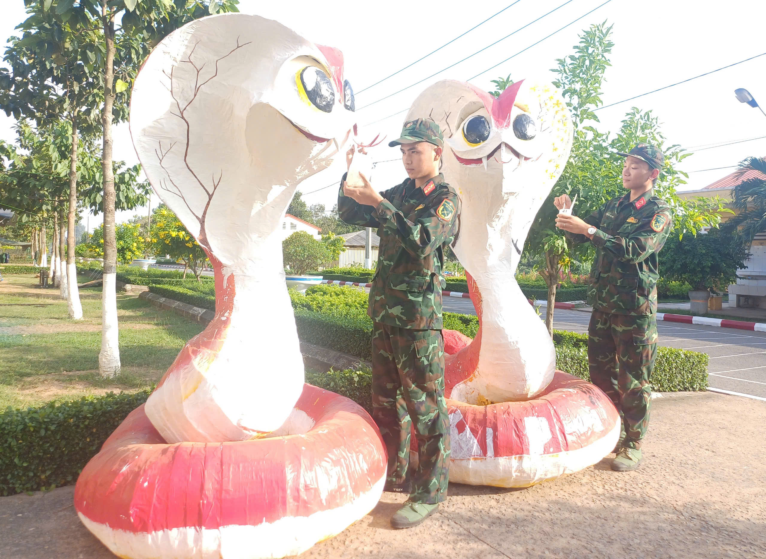 Khuôn viên doanh trại Trung đoàn 31, Sư đoàn 309 được khoác lên mình một chiếc áo mới, lộng lẫy bởi những sắc hoa tươi thắm dọc các đường đi, với những khóm hoa các loại đầy sức sống, đang đua nhau khoe sắc, đón chào xuân mới, như nụ cười trên môi của những chiến sĩ trẻ, căng tràn nhựa sống. Không khí ở đây luôn tràn ngập sức sống, sức trẻ của cán bộ, chiến sĩ, với những lời nói chuyện rôm rả, vui tươi, náo nức cùng động viên nhau tích cực chăm sóc hoa, trang trí tết, sơn sửa, củng cố cảnh quan, môi trường doanh trại “Xanh – sạch – đẹp”; hay sự náo nhiệt của đội lân, đội văn nghệ đang tích cực luyện tập các tiết mục đặc sắc để biểu diễn cho cán bộ, chiến sĩ thưởng thức trong đêm giao thừa và ngày đầu năm mới.
