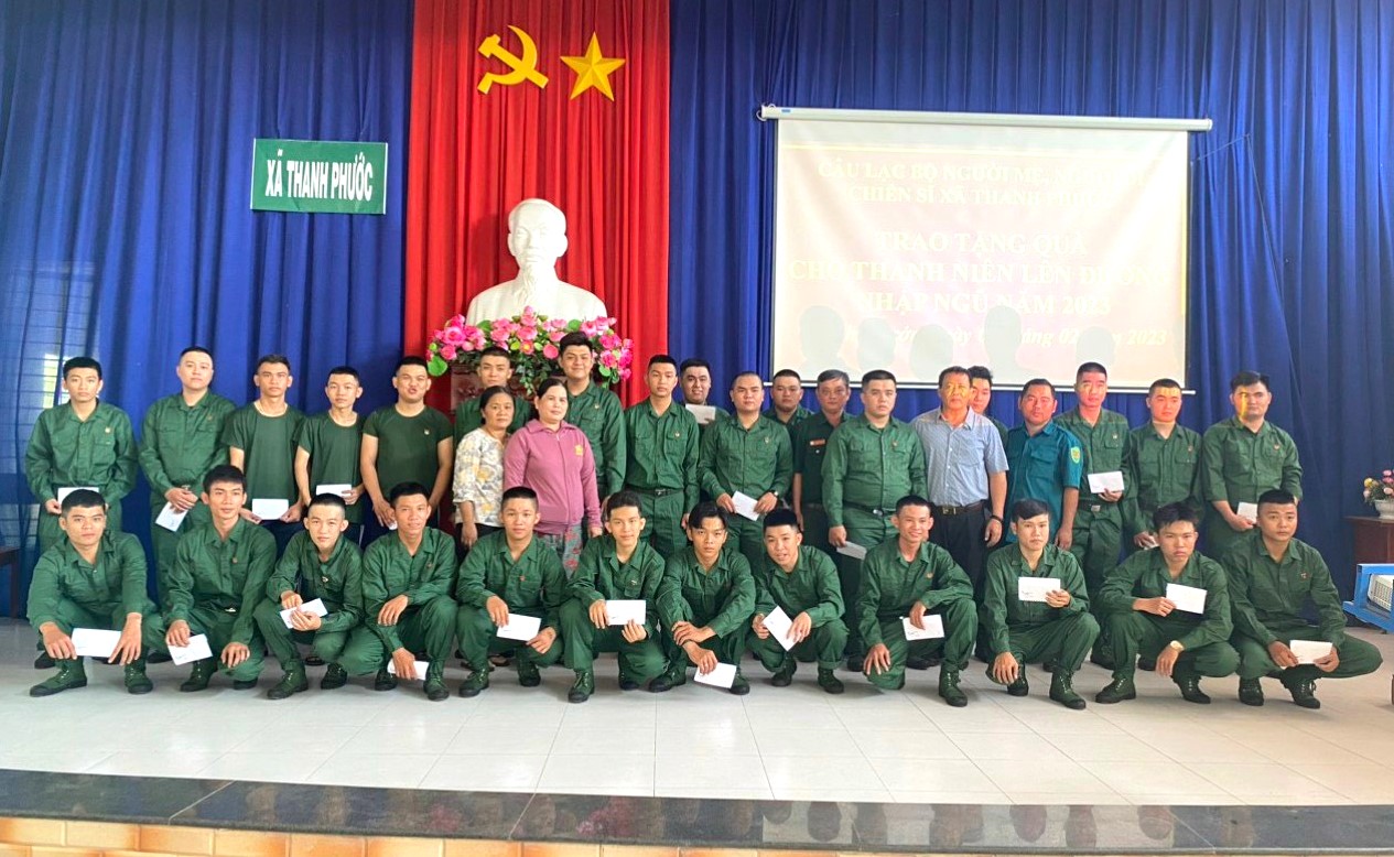 “Câu lạc bộ người mẹ, người dì chiến sĩ” xã Thanh Phước tặng quà cho thanh niên lên đường nhập ngũ. ​Ảnh: Nguyễn Thời