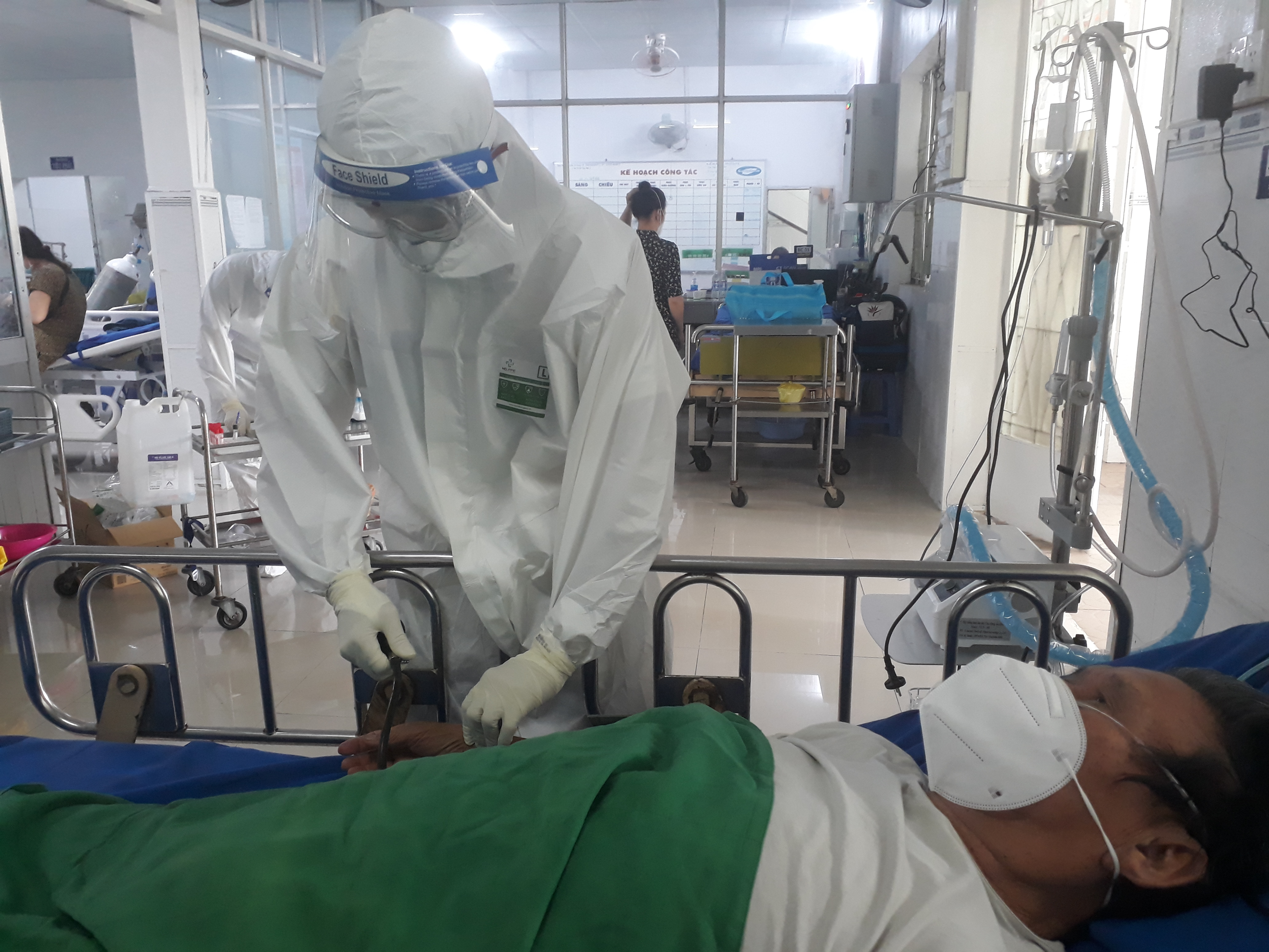 20 giờ, đang ăn bữa tối muộn, điều dưỡng Nguyễn Ngọc Huệ, khoa Covid 2, nhận được tin nhắn zalo của bệnh nhân có triệu chứng khó thở, cần oxy gấp... Nuốt vội miếng cơm, chị vội vàng mặc đồ bảo hộ kín mít, nhanh chóng lên khoa để kịp thời chuyển oxy cho bệnh nhân. Đây chỉ là một trong vô vàn tin nhắn yêu cầu của bệnh nhân mà các y, bác sĩ của khoa nhận được trong ngày. Để phục vụ bệnh nhân ngày càng tốt hơn, bệnh viện đã trang bị hệ thống wifi miễn phí. Các khoa trong bệnh viện đều tạo lập các nhóm zalo để các bệnh nhân có thể trao đổi kịp thời, trực tiếp với y, bác sĩ về các triệu chứng bệnh, tăng cường sự kết nối giữa bệnh nhân và y, bác sĩ. Chính vì vậy, bên cạnh việc thăm khám hàng ngày theo quy định, chị Huệ và các y, bác sĩ của khoa luôn phải “để mắt” đến cái điện thoại để kịp thời có mặt theo yêu cầu của bệnh nhân.