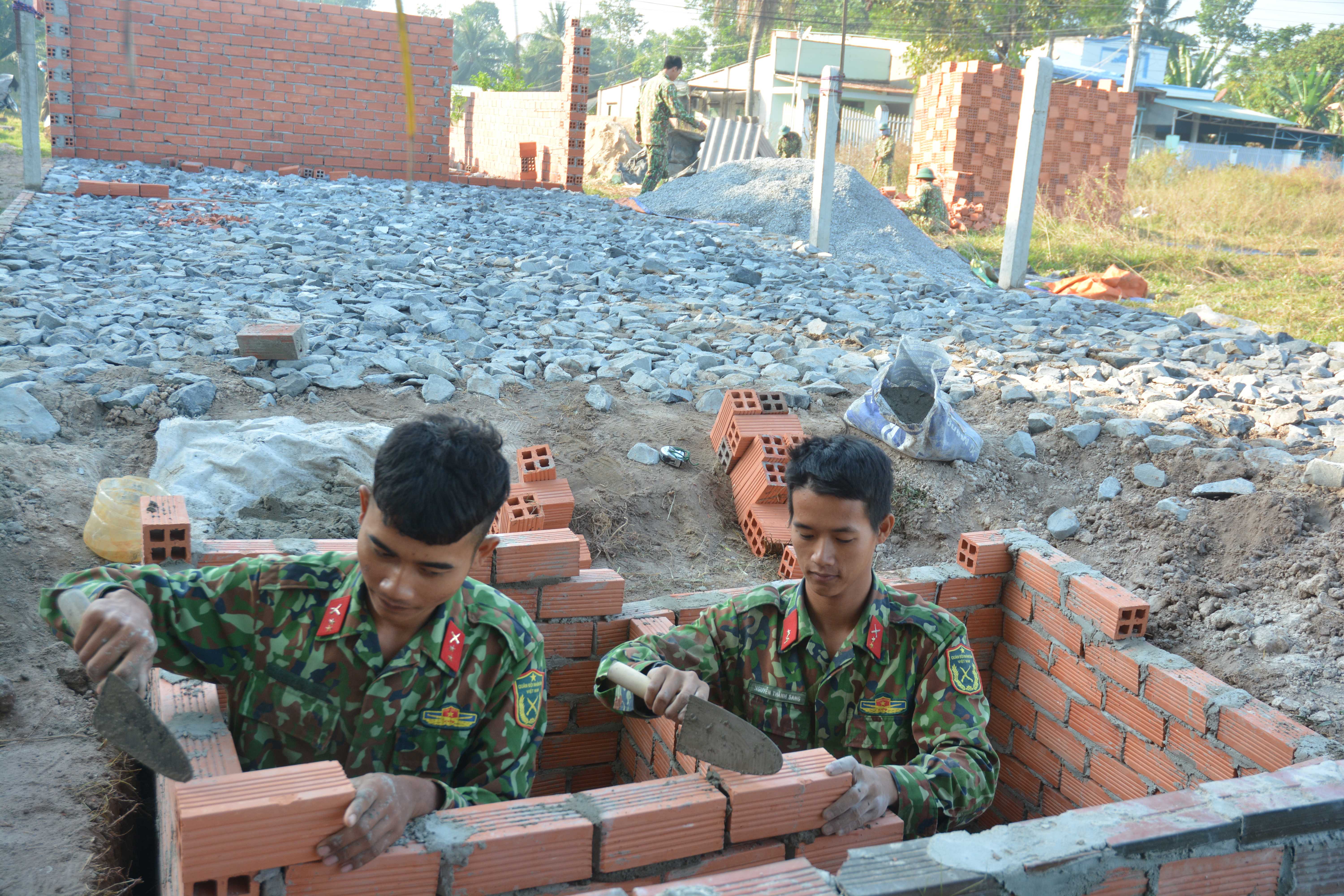 Tại công trình đang thi công, chúng tôi gặp các chiến sĩ đang miệt mài lao động, nơi đang trộn hồ, đổ bê tông, bộ phận cắt sắt, chiến sĩ tay cầm viên gạch, tay cầm bay đang thoăt thoắt xây. Binh nhất Võ Văn Nam, Đại đội 9, Tiểu đoàn 3, quê ở xã Đà Loan, huyện Đức Trọng, tỉnh Lâm Đồng là một thành viên tích cực của tổ công thợ trong thời gian qua. Theo lời kể, trước khi viết đơn tình nguyện nhập ngũ vào Quân đội, Nam là thợ xây, làm công cho thầu. Vì thế khi vào đơn vị, kiểm tra hồ sơ biết có kỹ thuật xây dựng, sau huấn luyện tân binh, Nam được tuyển chọn vào đội thợ xây dựng của đơn vị, ngoài phục vụ trong đơn vị, anh cùng đồng đội tham gia xây dựng nhiều căn nhà cho các đối tượng chính sách, người có công, người có hoàn cảnh khó khăn, neo đơn … trên địa bàn xã Thái Bình và giúp địa phương nhiều phần việc có ý nghĩa.