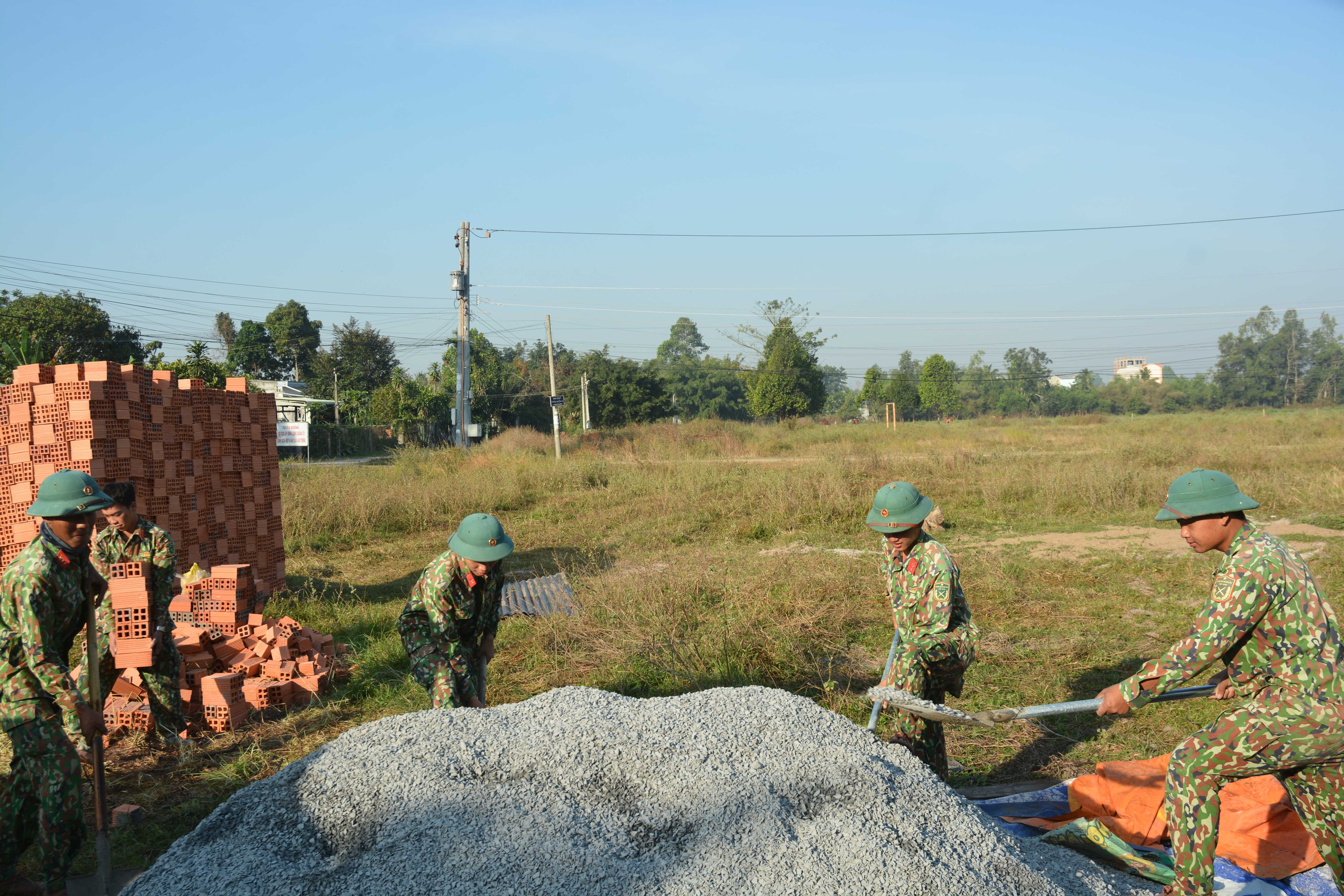 Chúng tôi không khỏi ngạc nhiên khi nhìn thấy tổ công trình có đến 10 người mặc quân phục. Hỏi ra mới biết đó là các chiến sĩ Đại đội 9, Đại đội 10, Đại đội 11, Tiểu đoàn 3, Trung đoàn 4, Sư đoàn 5. Thiếu úy Trần Nhật Phú, Chỉ huy đội thợ xây áo lính cho biết: Trung đoàn 4 là đơn vị kết nghĩa với xã Thái Bình. Trên tinh thần kết nghĩa, thực hiện sự chỉ đạo của thủ trưởng Bộ chỉ huy Sư đoàn về thực hiện Phong trào “LLVT chung sức xây dựng nông thôn mới”, Trung đoàn giúp địa phương hàng ngàn ngày công xây dựng, sửa chữa, nâng cấp công trình giao thông nông thôn, xây dựng bồn hoa các trường học, xây nhà tình thương, nhà đại đoàn kết, xây, đổ bê tông văn phòng ấp, một số tuyến đường giao thông nông thôn, giúp đỡ gia đình chính sách, người có hoàn cảnh khó khăn, người neo đơn.