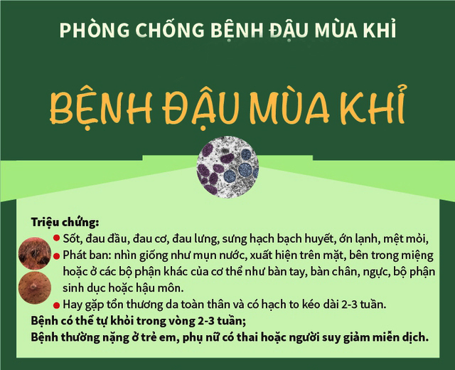 Triệu chứng điển hình của bệnh đậu mùa khỉ bao gồm sốt, đau đầu dữ dội, đau cơ, đau lưng, suy nhược cơ thể, sưng hạch bạch huyết.
