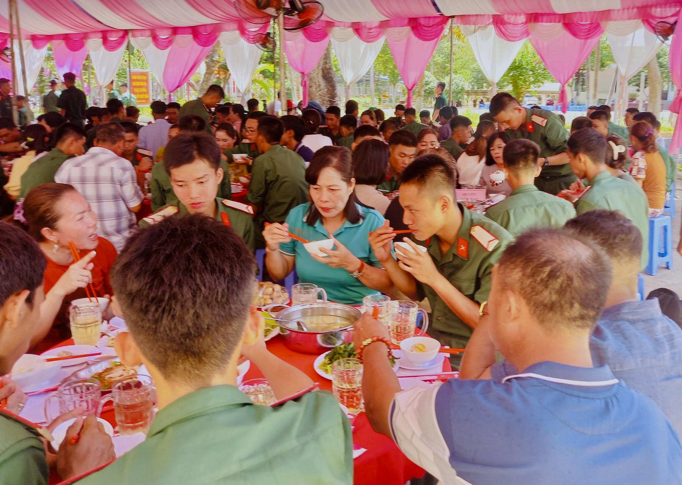Đến thăm chiến sĩ mới, người thân chiến sĩ được đơn vị tiếp đón ân cần, chu đáo; giới thiệu nơi ăn, ở, học tập của các chiến sĩ và trao đổi những nội dung cần thiết. Sau đó, người thân và chiến sĩ được bố trí khoảng không gian riêng tư để họ quây quần bên nhau trò chuyện trong không khí vui vẻ, đầm ấm.