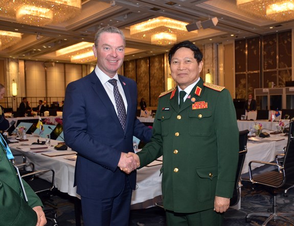Bộ trưởng Ngô Xuân Lịch tiếp xúc bên lề với Bộ trưởng Quốc phòng Australia.