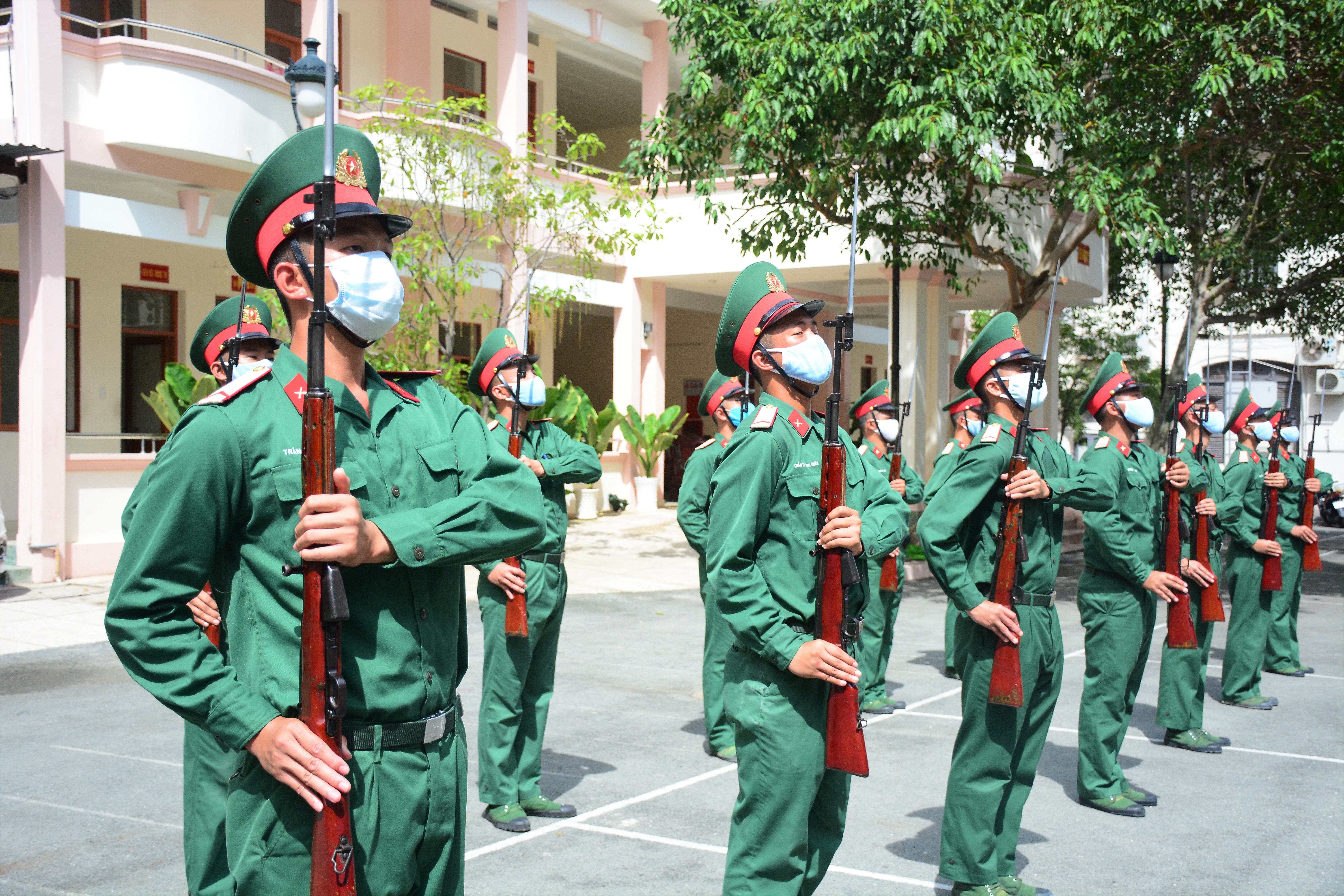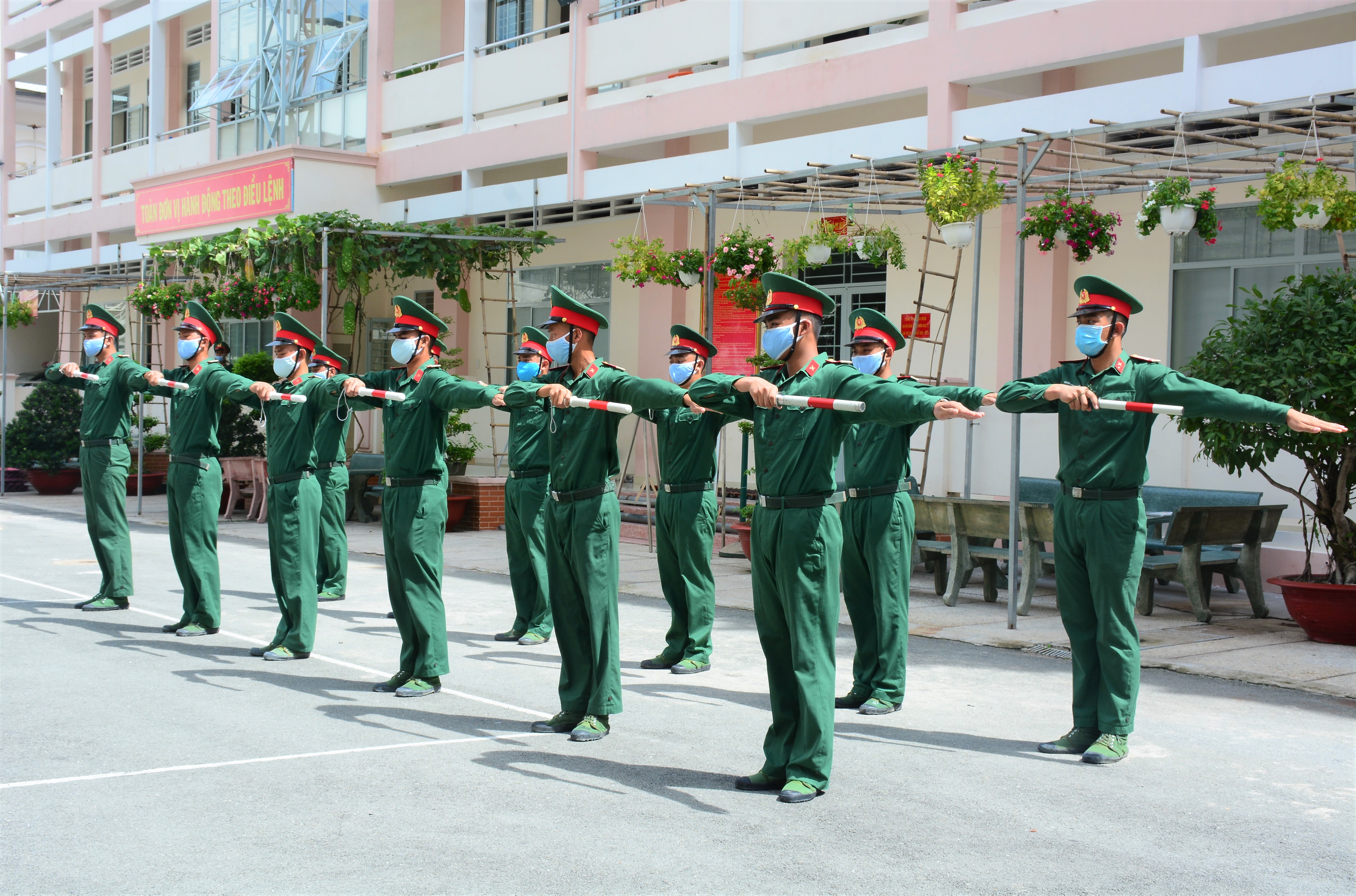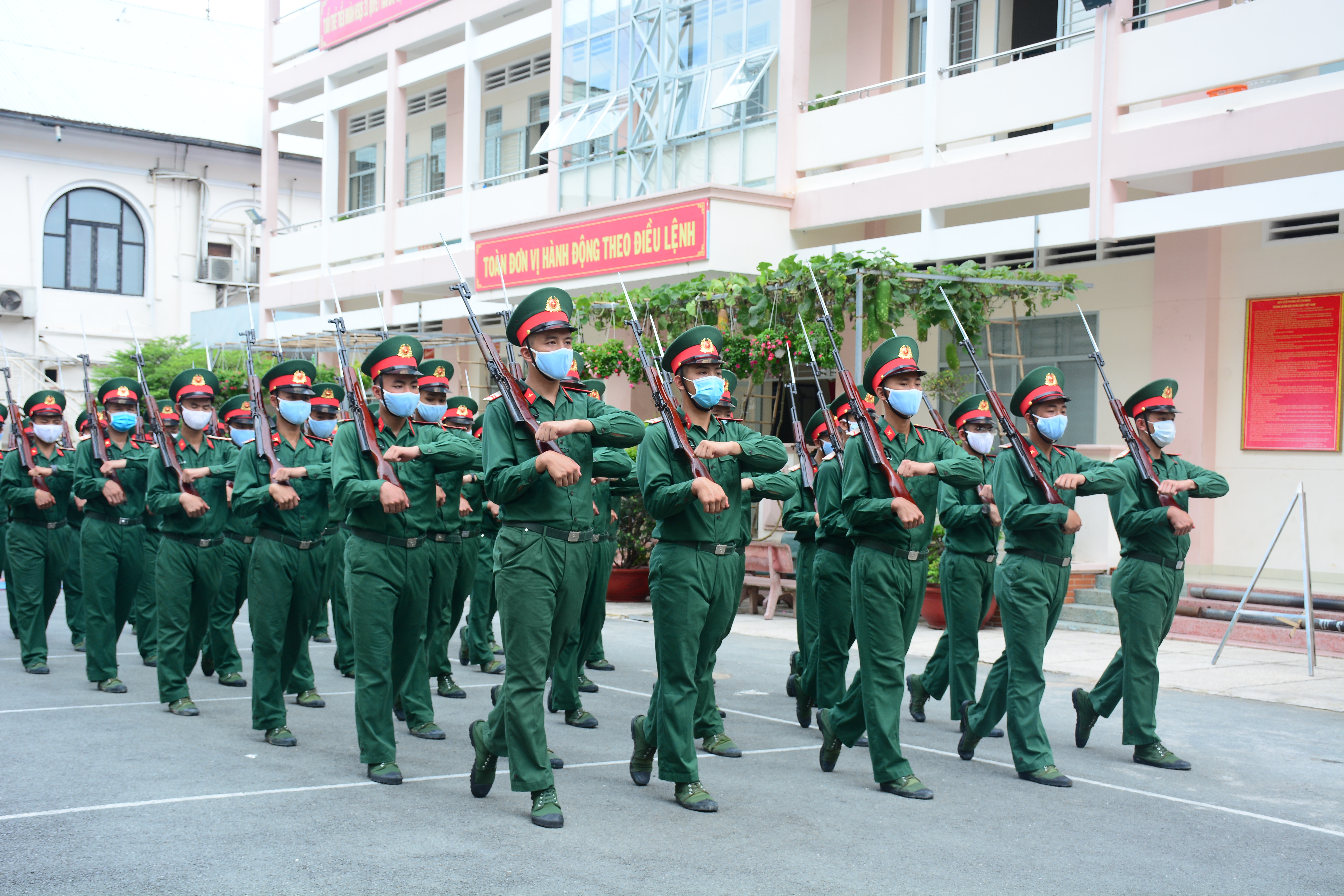 Chiến sĩ luyện tập điều lệnh đội ngũ.