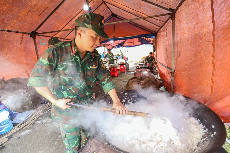 Những phần thức ăn nóng hổi được chuẩn bị chu đáo, sẵn sàng phục vụ bộ đội.