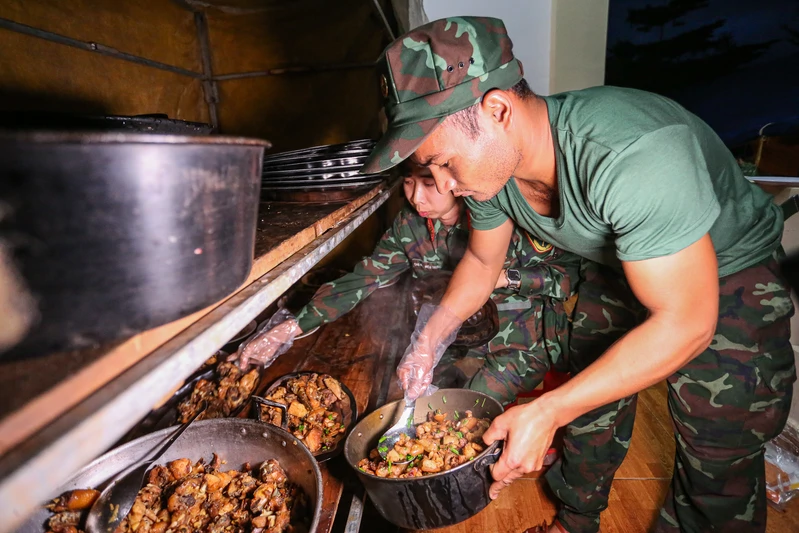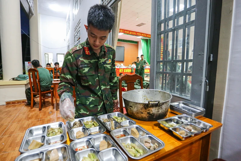 Bộ đội dùng bữa cơm đảm bảo chất lượng.