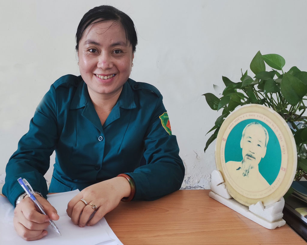 Chị Hương trở thành nữ dân quân thường trực từ năm 2019 với nhiệm vụ làm công tác thống kê quân sự, xử lý văn bản và một số công việc hành chính tại đơn vị. Bên cạnh nhiệm vụ thường xuyên tại đơn vị, chị luôn tuân thủ tham gia thực hiện nghiêm chế độ trực, huấn luyện, diễn tập hàng năm; tham gia tổ bộ binh bắn mục tiêu bay thấp; tăng gia sản xuất tại Ban CHQS xã.