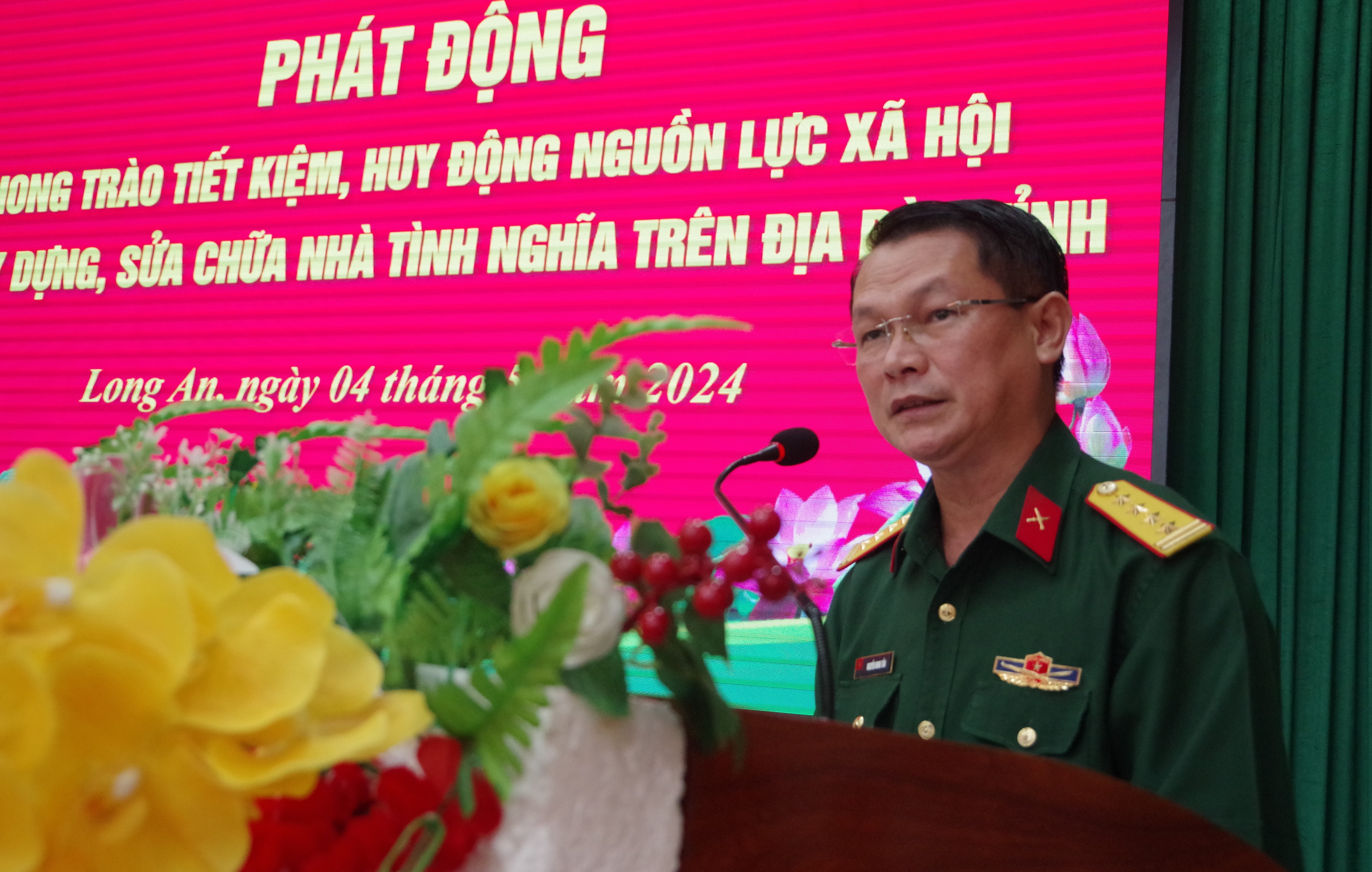 (QK7 Online) - Sáng ngày 4/5, Bộ CHQS tỉnh Long An phát động phong trào tiết kiệm, huy động nguồn lực xã hội để xây dựng, sửa chữa nhà tình nghĩa trên địa bàn tỉnh.