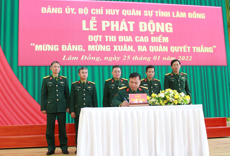 Phát biểu tại lễ phát động, Đại tá Nguyễn Văn Sơn, Phó Chính uỷ Bộ Chỉ huy Quân sự tỉnh nhấn mạnh: Đợt thi đua cao điểm “Mừng Đảng, mừng xuân, ra quân quyết thắng” là hoạt động trọng điểm trong Phong trào Thi đua Quyết thắng năm 2022 của lực lượng vũ trang tỉnh. Đảng ủy Bộ Chỉ huy Quân sự tỉnh và Hội đồng thi đua khen thưởng lực lượng vũ trang tỉnh kêu gọi các cơ quan, đơn vị cùng toàn thể cán bộ, chiến sĩ tiếp tục phát huy cao độ truyền thống “Trung thành vô hạn, đoàn kết kỷ cương, tự lực tự cường, quyết chiến quyết thắng” của lực lượng vũ trang tỉnh, đóng góp nhiều hơn nữa sức lực, trí tuệ và tài năng, thực hiện thắng lợi mục tiêu, nội dung thi đua đề ra; tạo khí thế hăng say, tích cực ngay từ những ngày đầu năm, tạo tiền đề hoàn thành nhiệm vụ năm 2022.