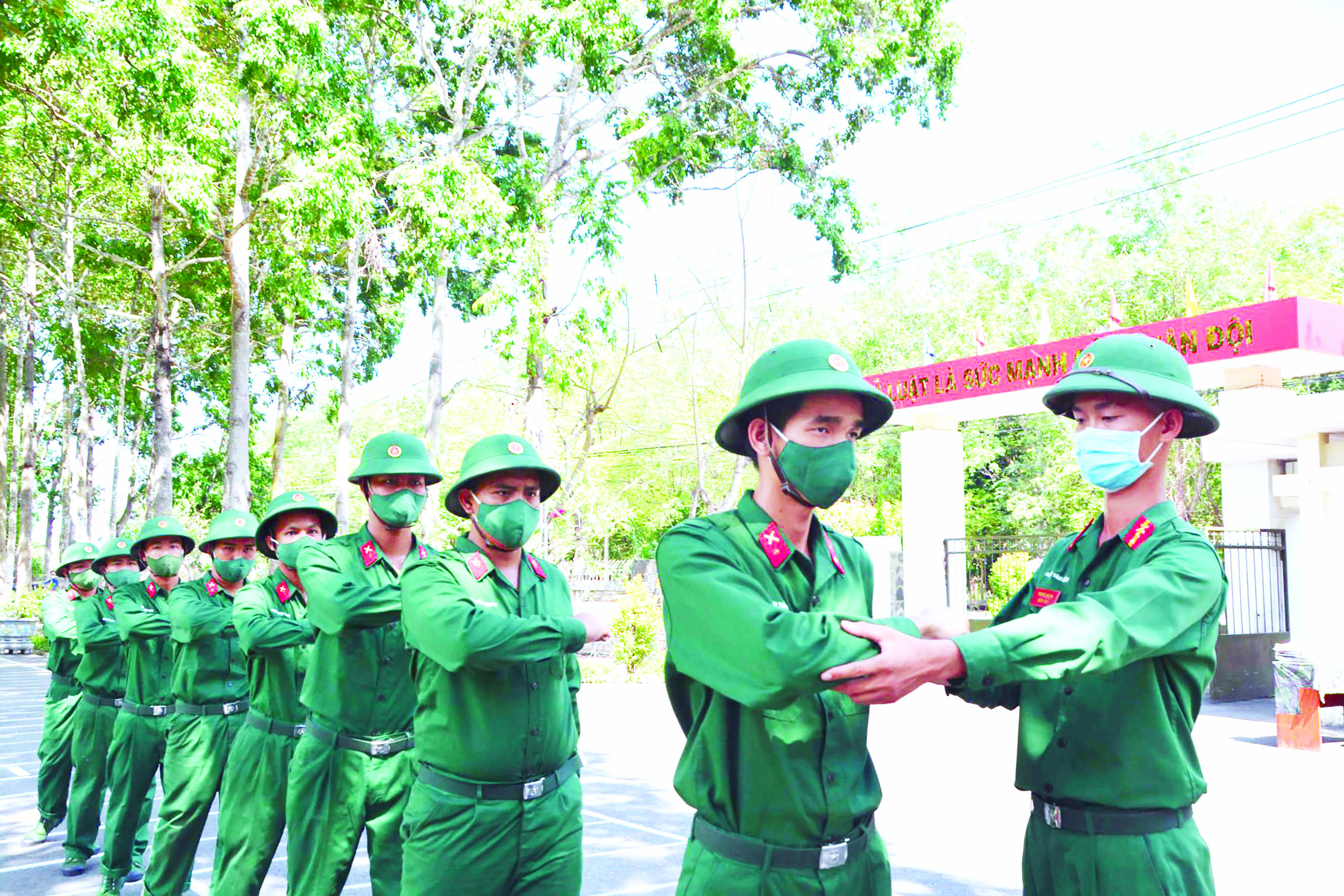 Chiến sĩ mới Đại đội 1, Trung đoàn 174 huấn luyện điều lệnh đội ngũ.