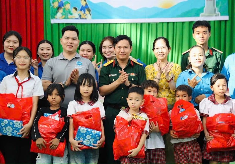 Tuổi trẻ Cục Chính trị Quân khu 7 tặng học bổng các em học sinh xã Bù Gia Mập, tỉnh Đồng Nai.