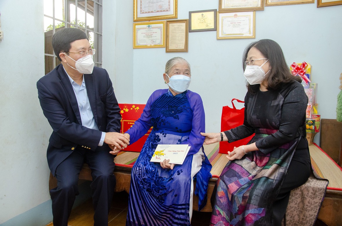 Cùng ngày, Phó Thủ tướng Thường trực Chính phủ Phạm Bình Minh đến thăm, tặng quà Mẹ Việt Nam Anh hùng Trần Thị Lưỡng và Anh hùng LLVT Nhân dân Nguyễn Văn Tròn; trao tặng quà các gia đình chính sách, người nghèo, gia đình khó khăn do dịch Covid-19, công nhân, người lao động khó khăn tại thị xã Phú Mỹ.
