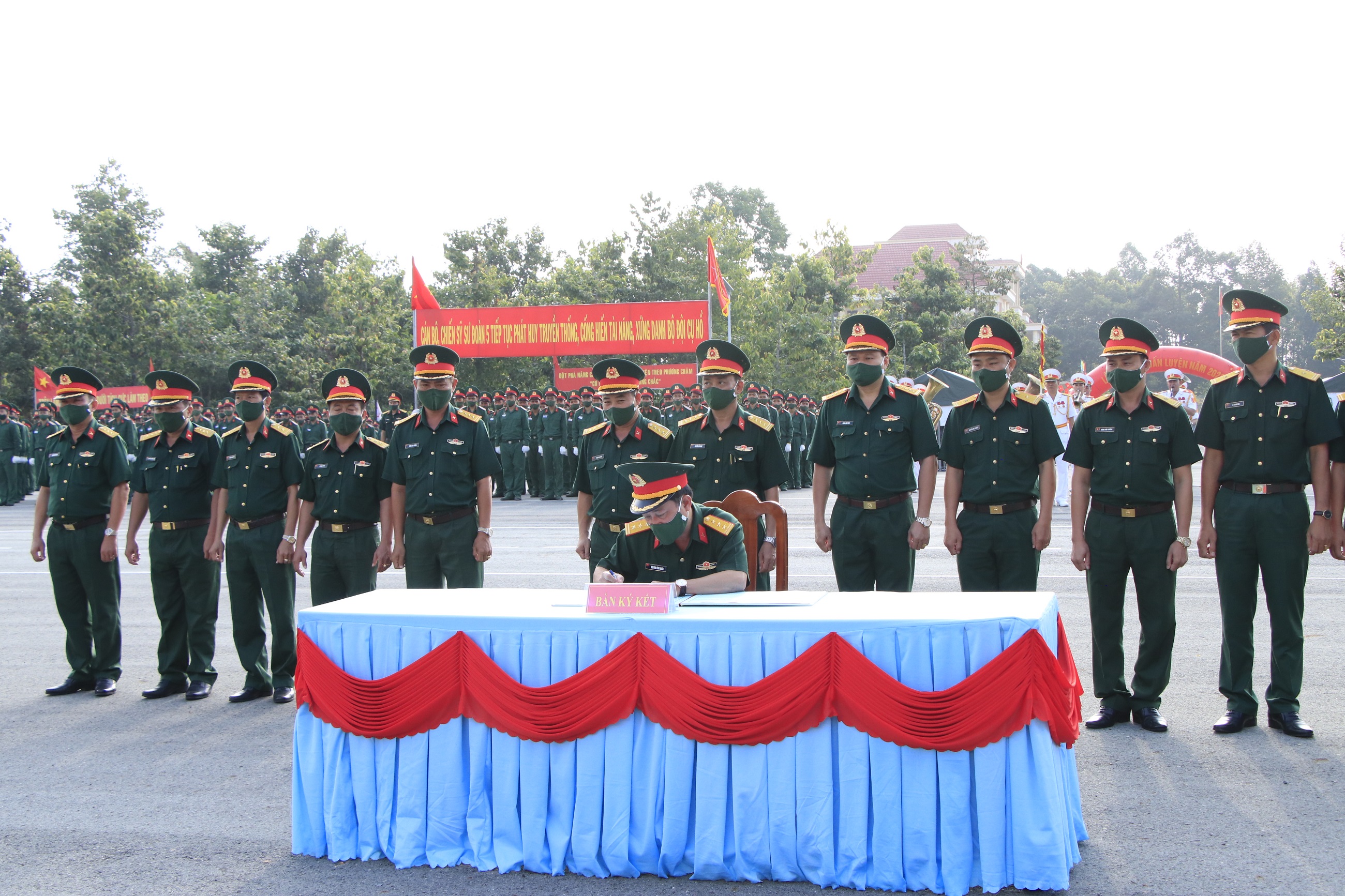 Tại buổi lễ, Thủ trưởng Bộ Tư lệnh Quân khu đã trao Cờ đơn vị huấn luyện giỏi của Bộ Quốc phòng và danh hiệu Đơn vị vững mạnh toàn diện “Mẫu mực tiêu biểu” năm 2021 của Bộ Tư lệnh Quân khu cho các tập thể của Sư đoàn 5. Tổ chức ký kết giao ước thi đua hoàn thành xuất sắc nhiệm vụ huấn luyện chiến đấu năm 2022 giữa các cơ quan, đơn vị trong toàn Sư đoàn.