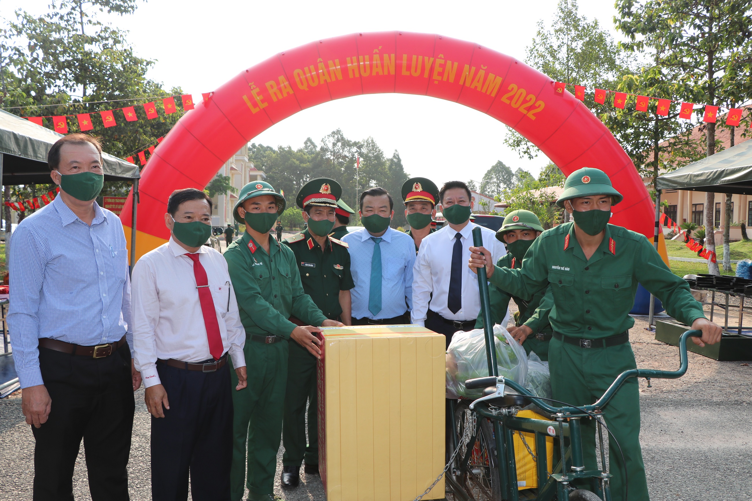 Thủ trưởng Bộ Tư lệnh Quân khu và các đồng chí lãnh đạo tỉnh Tây Ninh chụp hình lưu niệm cùng chiến sĩ Sư đoàn