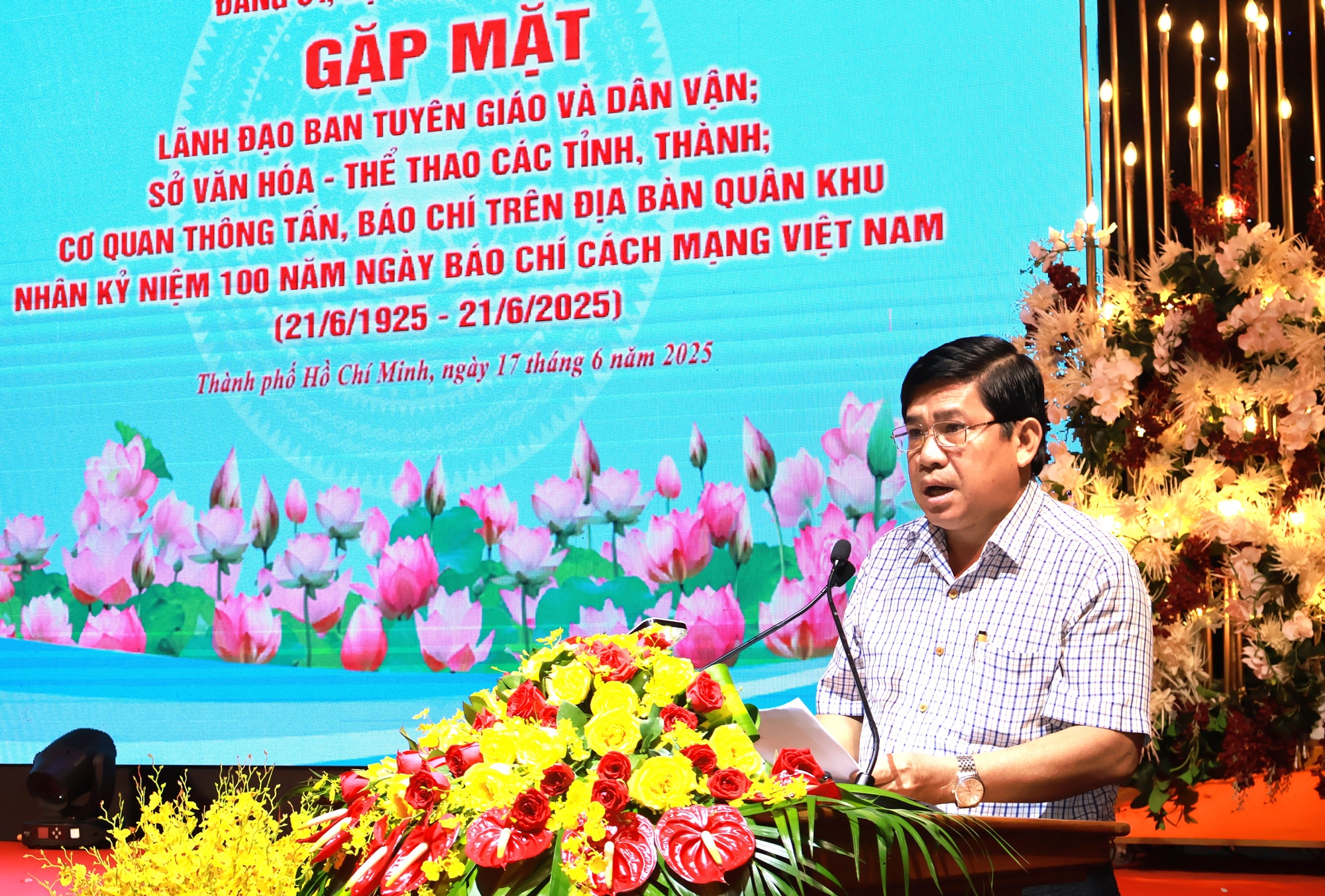 Chiều 17/6, Đảng ủy, Bộ Tư lệnh Quân khu tổ chức gặp mặt lãnh đạo Ban Tuyên giáo và Dân vận; Sở Văn hóa - Thể thao các tỉnh, thành ủy; các cơ quan thông tấn, báo chí trên địa bàn Quân khu nhân kỷ niệm 100 năm Ngày Báo chí cách mạng Việt Nam (21/6/1925 - 21/6/2025). Thiếu tướng Trần Vinh Ngọc, Bí thư Đảng ủy, Chính ủy Quân khu chủ trì buổi gặp mặt.