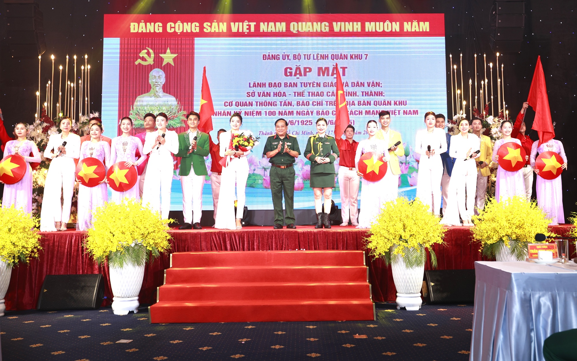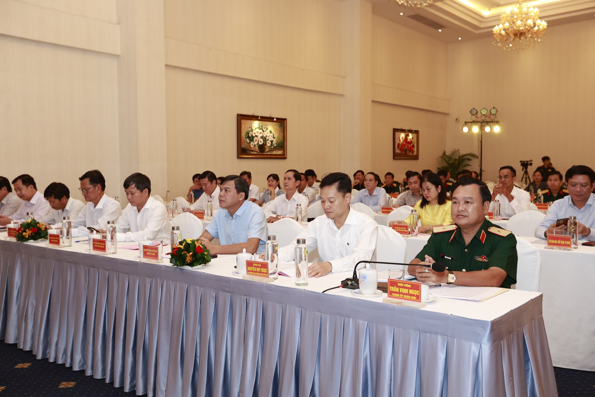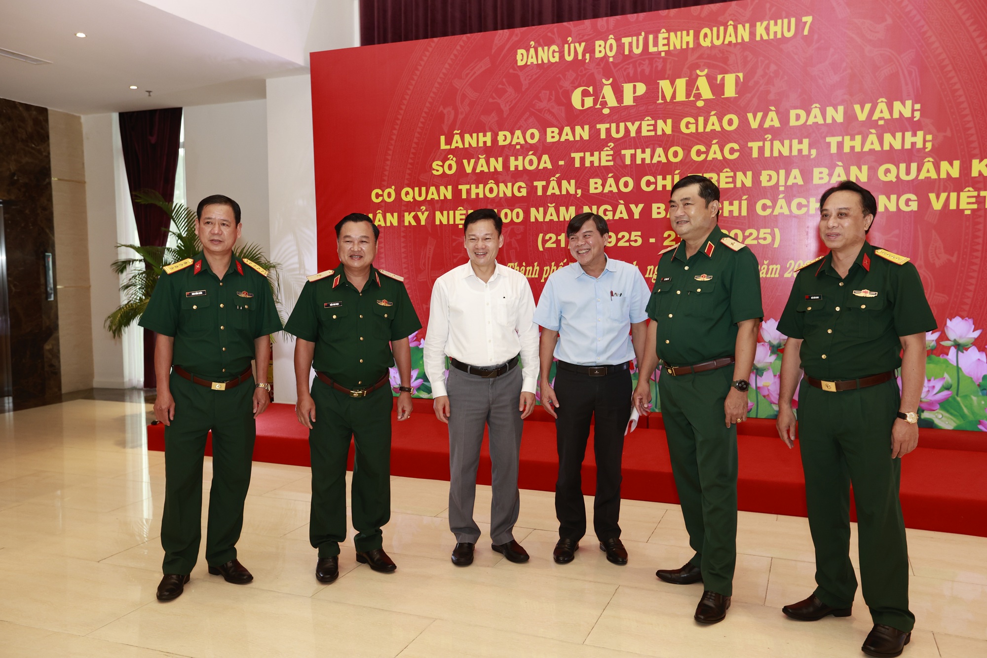 Tham dự buổi gặp mặt có Thiếu tướng Lê Xuân Thế, Phó Tư lệnh Quân khu; Thiếu tướng Trần Chí Tâm, Phó Chính ủy Quân khu; đồng chí Nguyễn Huy Ngọc, Vụ trưởng Vụ địa phương 3, Ban Tuyên giáo và Dân vận Trung ương; thủ trưởng các cơ quan Quân khu; lãnh đạo, chỉ huy các cơ quan, đơn vị trong LLVT Quân khu và đại biểu lãnh đạo Ban Tuyên giáo và Dân vận; Sở Văn hóa - Thể thao TPHCM; Sở Văn hóa - Thể thao và Du lịch các tỉnh; các cơ quan thông tấn, báo chí trên địa bàn Quân khu.