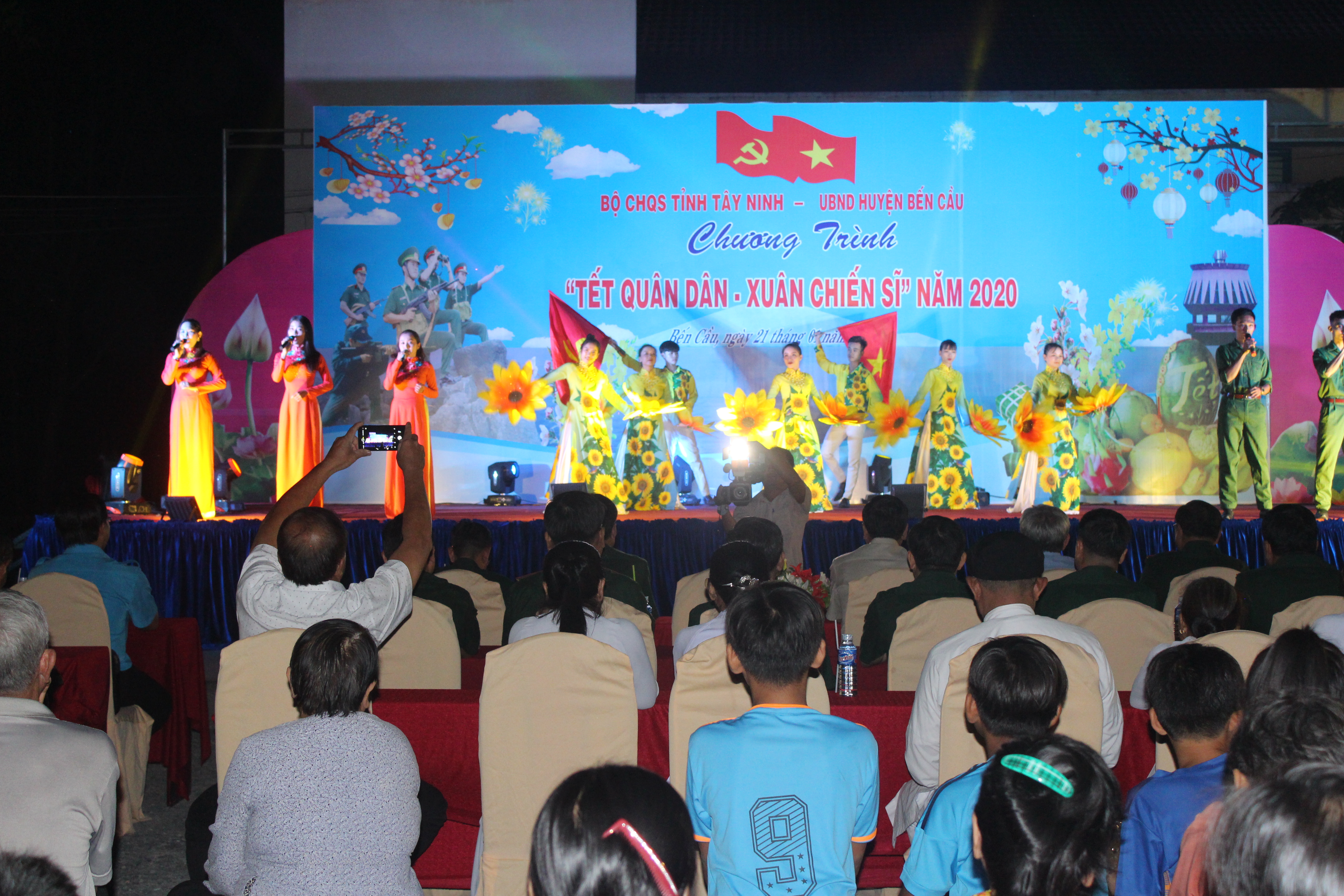 Đêm (27 Tết Canh Tý), tức ngày 21/01/2020, tại xã Long Phước, huyện Bến Cầu, Tây Ninh Bộ CHQS tỉnh phối hợp với UBND huyện Bến Cầu tổ chức Chương trình “Xuân chiến sĩ” năm 2020.