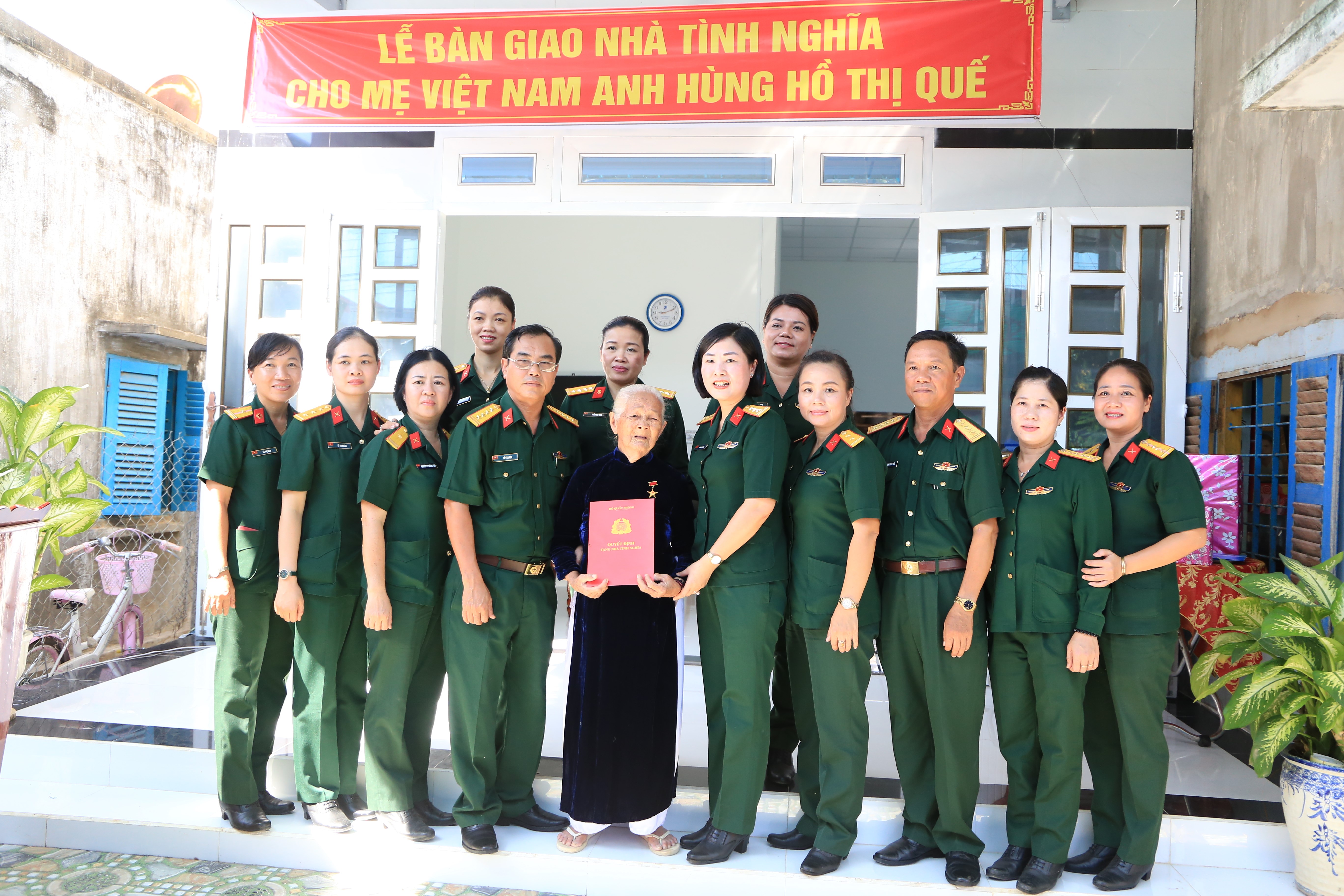 Đoàn đã đến tặng nhà cho Mẹ Việt Nam anh hùng Hồ Thị Quế tại khu phố Lương Bình, thị trấn Lương Sơn, huyện Bắc Bình có diện tích 46,8 m2 với tổng kinh phí xây dựng trên 200 triệu đồng. Trong đó, Bộ Quốc phòng hỗ trợ 80 triệu đồng, Ban Phụ nữ Quân đội hỗ trợ 50 triệu đồng, phụ nữ LLVT Quân khu 7 và Bộ CHQS tỉnh Bình Thuận tặng 6 triệu đồng, số còn lại do gia đình vận động đóng góp thêm.