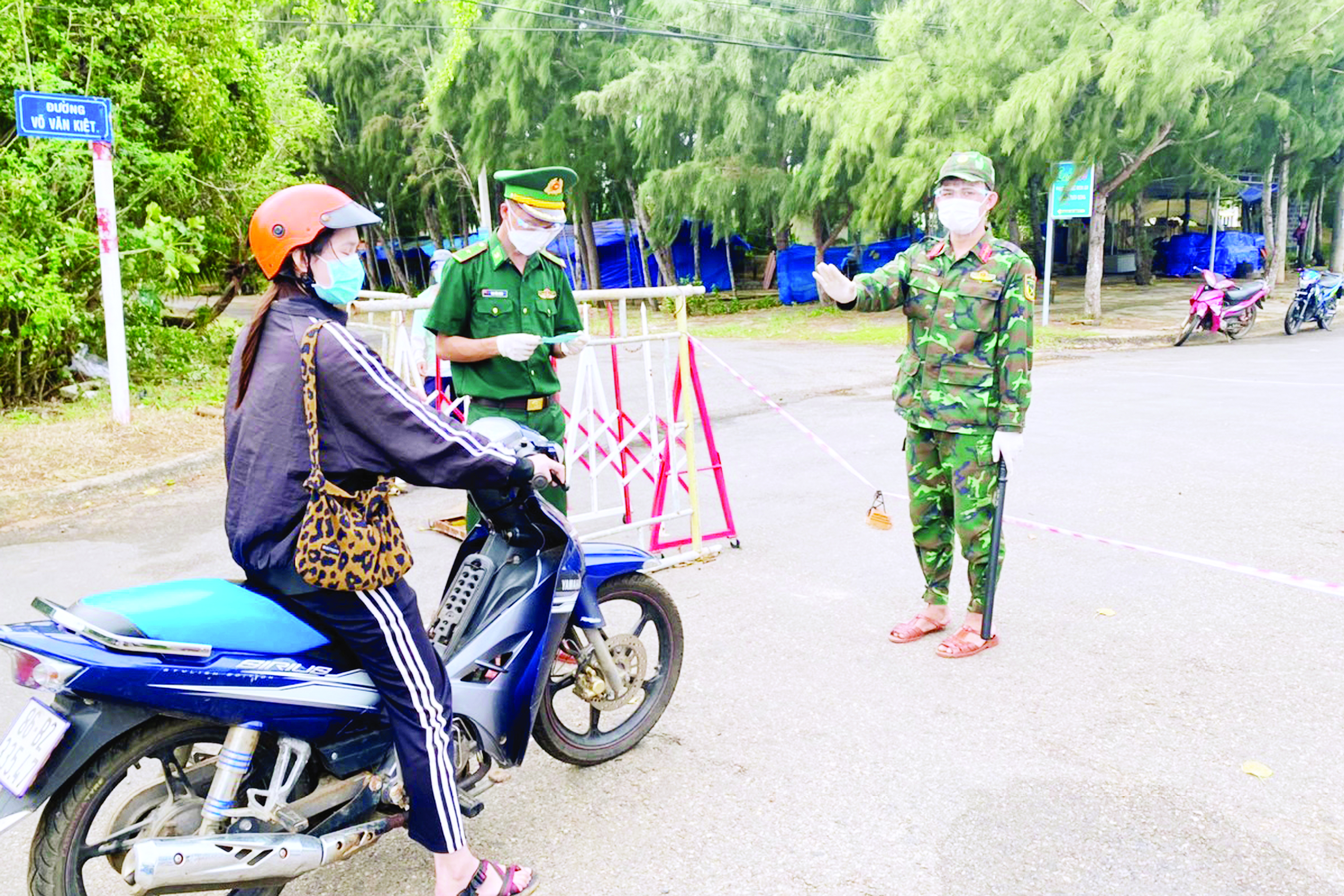 Trung tá Nguyễn Xuân Thuân cho biết, khi đảo xảy ra dịch bệnh, ban đầu từ 3 ca dương tính là ngư dân đi đánh bắt hải sản về lên đảo và test nhanh dương tính với Covid - 19, từ đó mở rộng cách ly, xét nghiệm F1, F2 thì liên tục xuất hiện những ca nhiễm mới. Được sự chỉ đạo của Huyện ủy, UBND, Ban chỉ đạo phòng, chống dịch địa phương và phối hợp của các ngành có liên quan, Ban CHQS huyện chủ trì, tổ chức, bảo đảm các cơ sở cách ly đã được khảo sát và chuẩn bị từ trước. Hàng trăm cán bộ, chiến sĩ Ban CHQS và các đơn vị nhanh chóng được phổ biến, tập huấn các kiến thức phòng, chống dịch và hành quân tham gia thành lập các chốt kiểm soát, phong tỏa, cách ly các khu dân cư có ca nhiễm và chuẩn bị bảo đảm, phục vụ các khu cách ly, bệnh viện dã chiến.