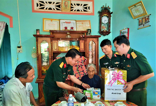 Trong dịp kỷ niệm 45 năm giải phóng hoàn toàn Miền Nam thống nhất đất nước, Trung tá Trần Lê Cường, Trung đoàn trưởng Trung đoàn 719 - Binh đoàn 16 đã ân cần thăm hỏi, chúc sức khỏe và trao tặng Mẹ tiền phụng dưỡng cùng phần quà trị giá 1 triệu đồng. “Mỗi lần có các con về thăm, nhất là những lúc trái gió, trở trời, giúp Mẹ thêm ấm lòng, bớt đi quạnh quẽ”. Mẹ Bảy ánh lên niềm vui, xúc động nói.