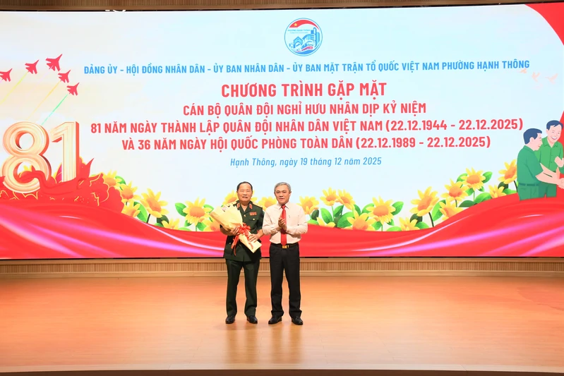 (QK7 Online) - Ngày 19/12, Đảng ủy - Ủy ban nhân dân - Hội đồng nhân dân - Ủy ban Mặt trận Tổ quốc Việt Nam phường Hạnh Thông, Thành phố Hồ Chí Minh phối hợp với Bệnh viện Quân y 175 tổ chức gặp mặt cán bộ Quân đội nghỉ hưu.