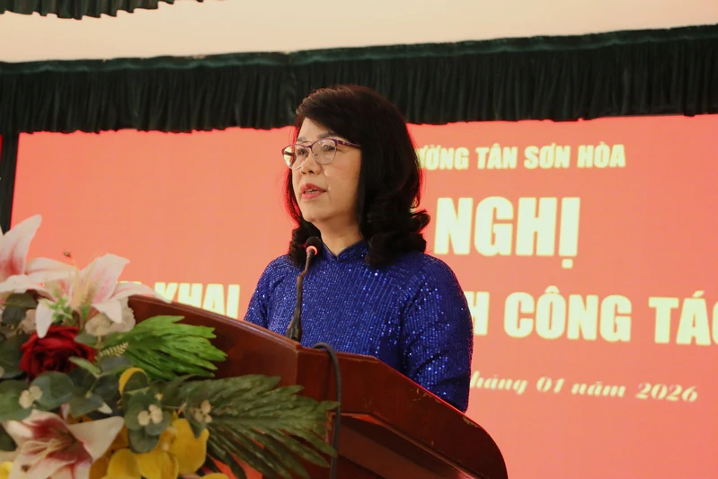 Phát biểu tại hội nghị, đồng chí Trương Lê Mỹ Ngọc nhấn mạnh nhiệm vụ trước mắt phường Tân Sơn Hòa tập trung chăm lo tết cho gia đình chính sách, người có công, đối tượng yếu thế… đảm bảo mọi người, mọi nhà vui xuân đón tết, với tinh thần không để ai bị bỏ lại phía sau; bảo đảm tuyệt đối an ninh chính trị, trật tự an toàn xã hội trong suốt thời gian diễn ra Đại hội đại biểu toàn quốc lần thứ XIV của Đảng; hoàn thành 100% chỉ tiêu tuyển chọn, gọi công dân nhập ngũ năm 2026, bảo đảm chất lượng, đúng quy trình, quy định.