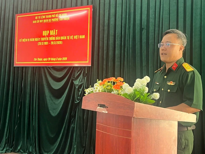 Đặc biệt, Ban CHQS phường Tân Thuận tổ chức họp mặt kỷ niệm 91 năm Ngày truyền thống Dân quân tự vệ với sự tham dự của hơn 70 đại biểu. Tại buổi họp mặt, các đại biểu đã ôn lại truyền thống vẻ vang của lực lượng Dân quân tự vệ Việt Nam; đồng thời biểu dương 44 cá nhân tiêu biểu và khen thưởng 3 cá nhân có thành tích xuất sắc trong thực hiện nhiệm vụ.