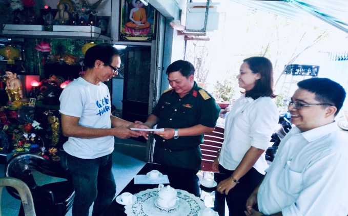 Thượng tá Nguyễn Thành Hảo, Chính trị viên Ban CHQS Quận 11 tặng quà gia đình chính sách.