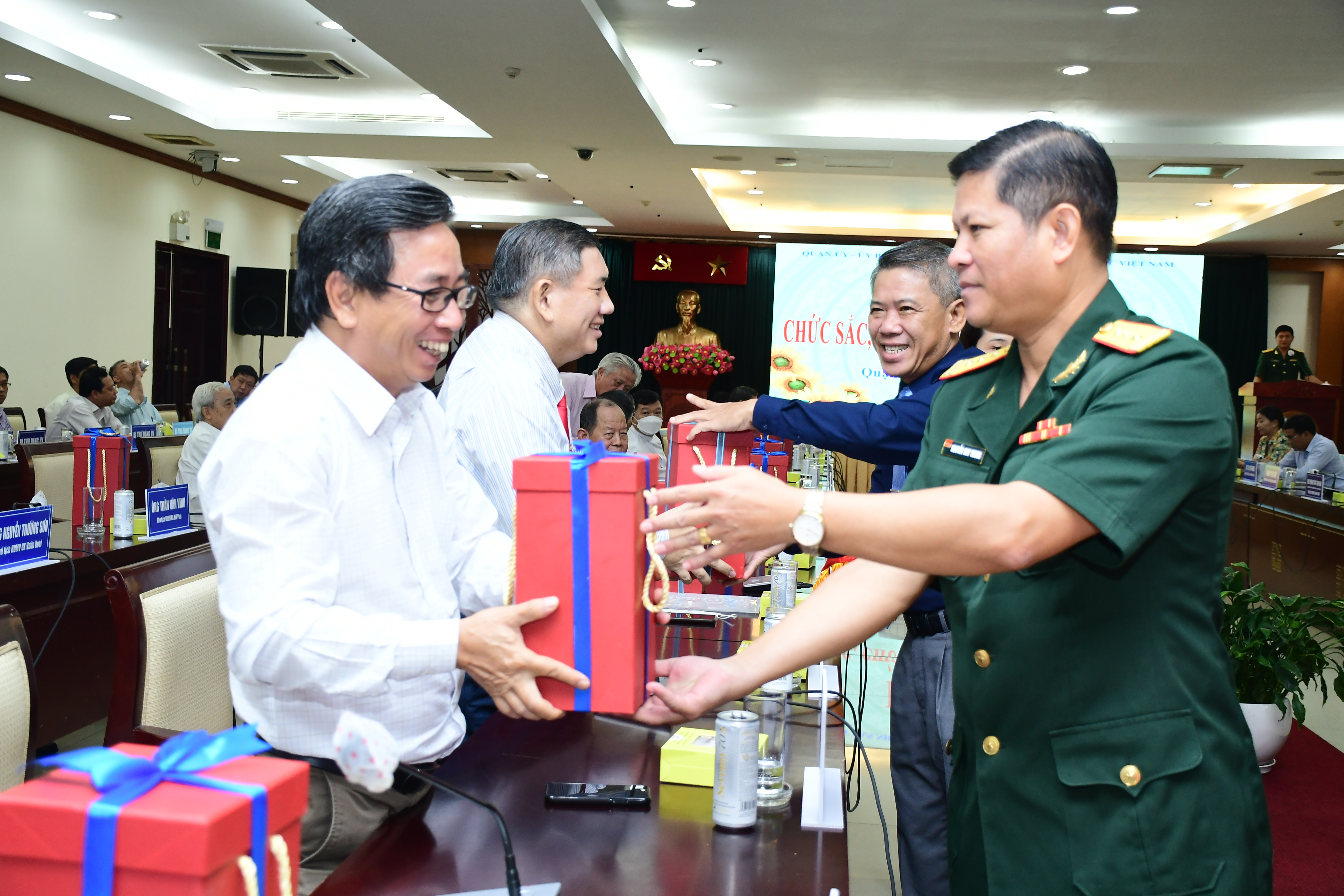 Đại diện Ban CHQS Quận 3 tặng quà chức sắc tôn giáo.