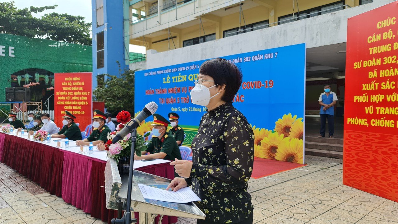 Quận 5 tiễn bộ đội Trung đoàn 88 hoàn thành nhiệm vụ hỗ trợ địa phương chống dịch