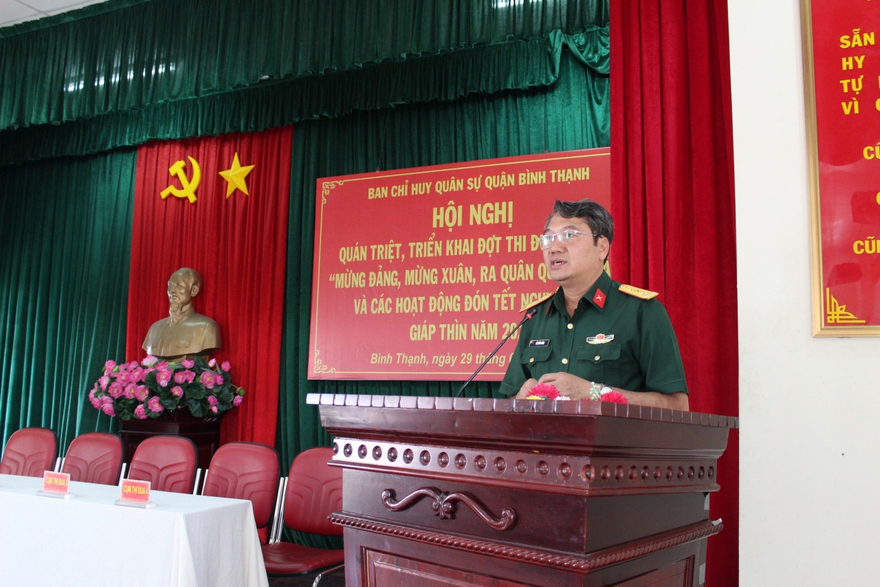Thượng tá Lê Xuân Hưng, Chính trị viên Ban CHQS quận quán triệt các nội dung đợt thi đua.